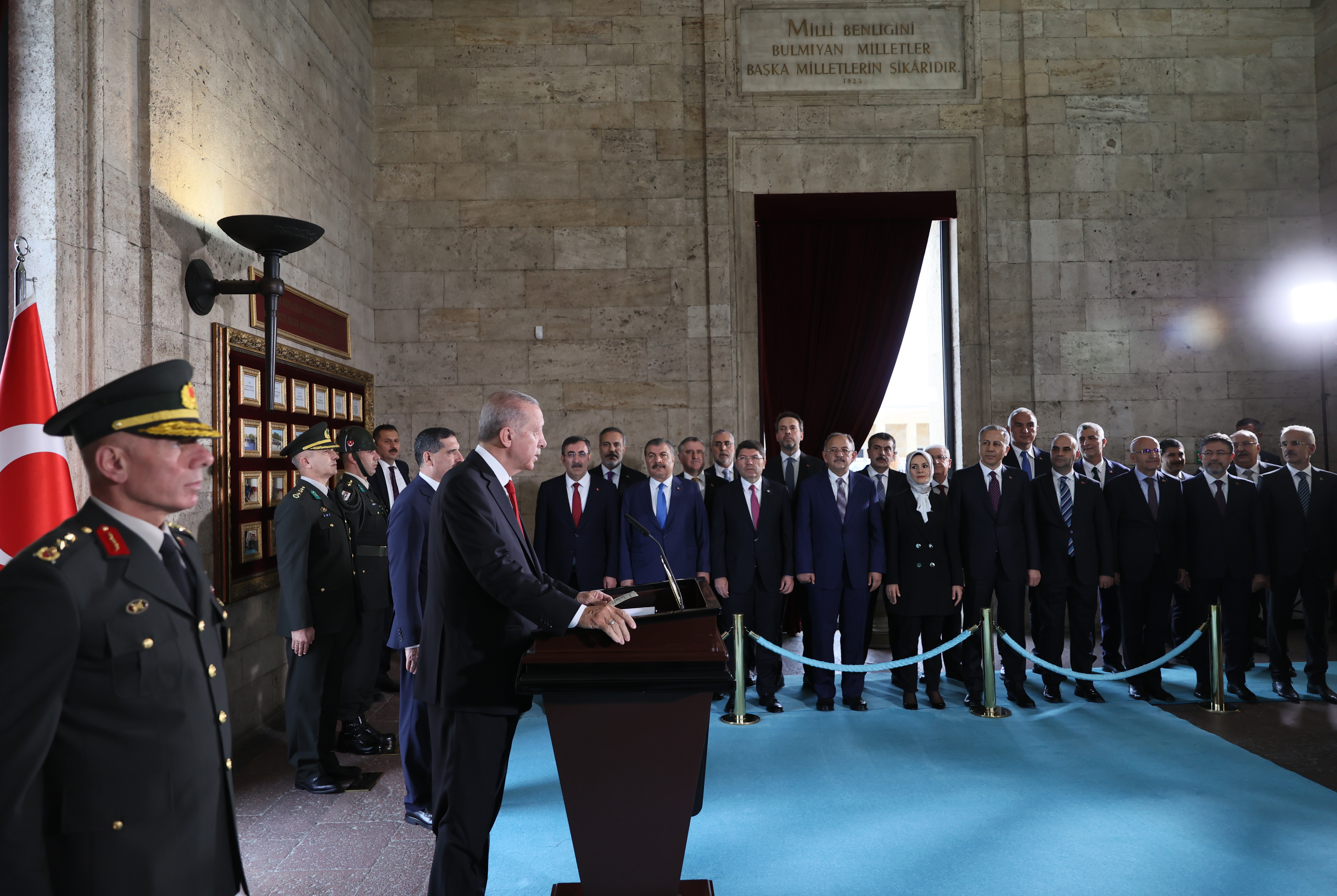 President Recep Tayyip Erdoğan and members of the Presidential Cabinet paid a visit to Anıtkabir and laid a wreath at Atatürk’s Mausoleum.