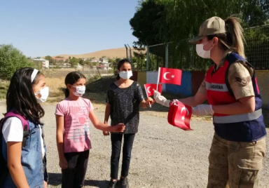 Yerel Basın Yüz yüze eğitime başlayan köy çocuklarına Mehmetçik’ten Türk bayraklı sürpriz İletişim Başkanlığı 07 09 2021