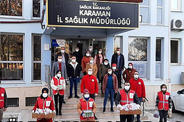 Yerel Basın Türk Kızılay Karaman Şubesi gönüllüleri, kısıtlamada görev başında olan kolluk kuvvetlerine ikramda bulundular İletişim Başkanlığı 30 12 2020