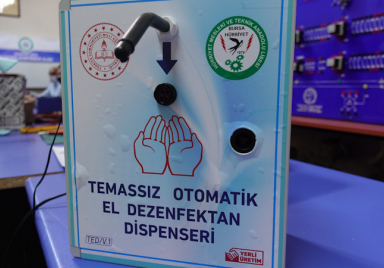 Yerel Basın Meslek lisesi öğretmenlerinin ürettiği “temassız” el dezenfektan cihazı ilgi görüyor İletişim Başkanlığı 04 06 2020