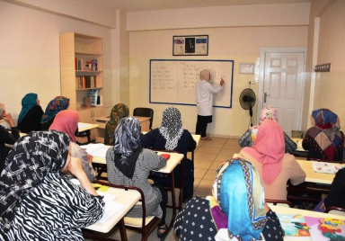 Yerel Basın Gaziantep Şahinbey Belediyesince açılan okuma yazma kursuna katılan 30 ile 60 yaş arasındaki kursiyerler okuma yazma öğreniyor İletişim Başkanlığı 18 08 2023
