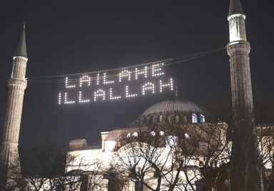 Yerel Basın Ayasofya-i Kebir Cami-i Şerifi’ne Kelime-i Tevhid yazılı mahya asıldı İletişim Başkanlığı 30 03 2022