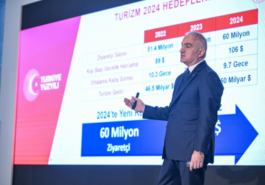Türkiye's tourism revenues rose 17 percent year-on-year to 54.3 billion U.S. dollars in 2023, the culture and tourism minister announced Wednesday. Mehmet Nuri Ersoy also pointed out at a meeting in Istanbul that the sector ended the year 2023 with 56.7 million visitors, a 10 percent increase compared to the previous year. Ersoy explained that Türkiye had changed its strategy and diversified its tourism products since 2018. "We see the impact of tourism product diversification on the average length of stay when we introduce products that involve short-term stays, such as international events, sports tournaments, and festivals," he added. In 2023, Türkiye was the...