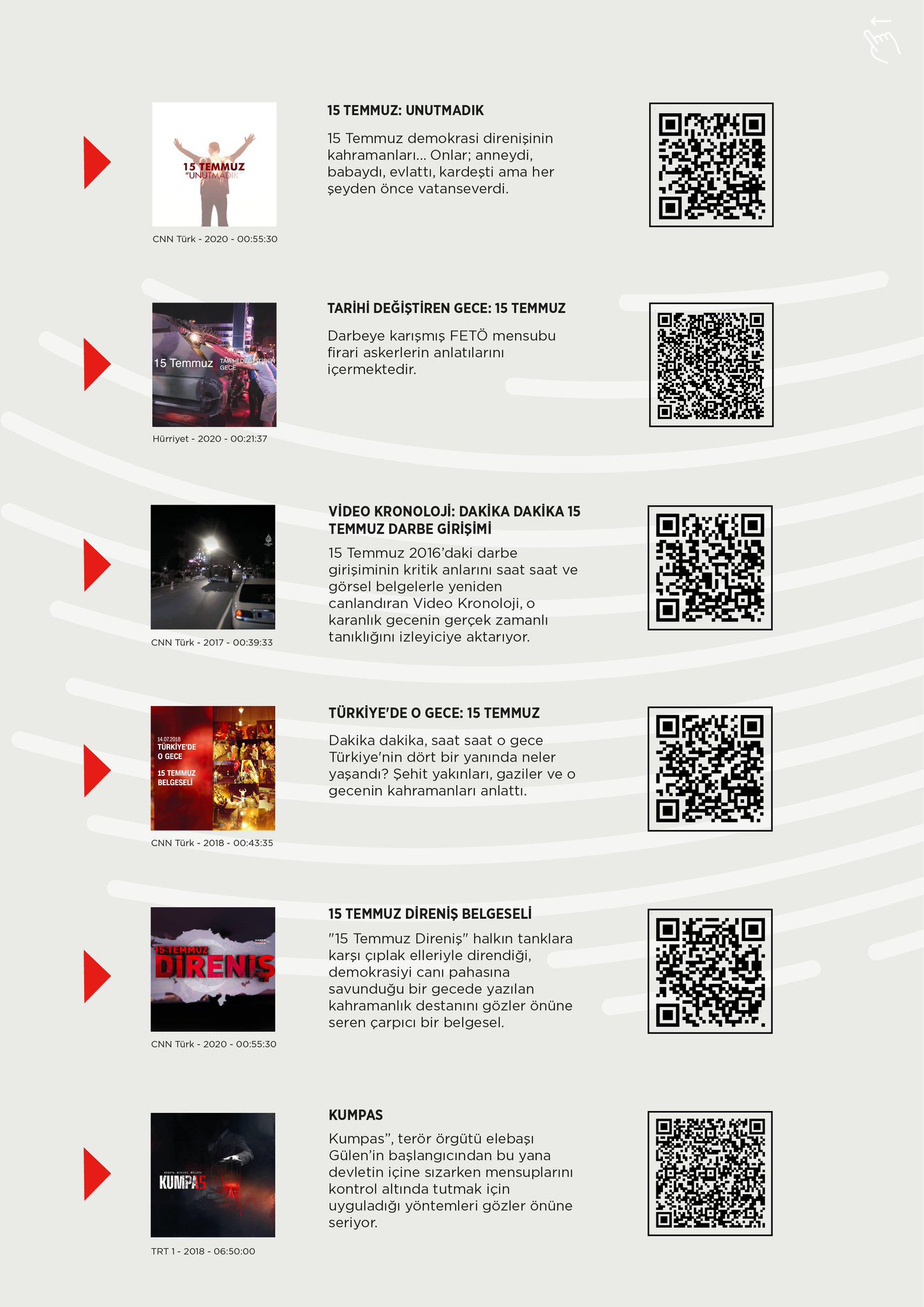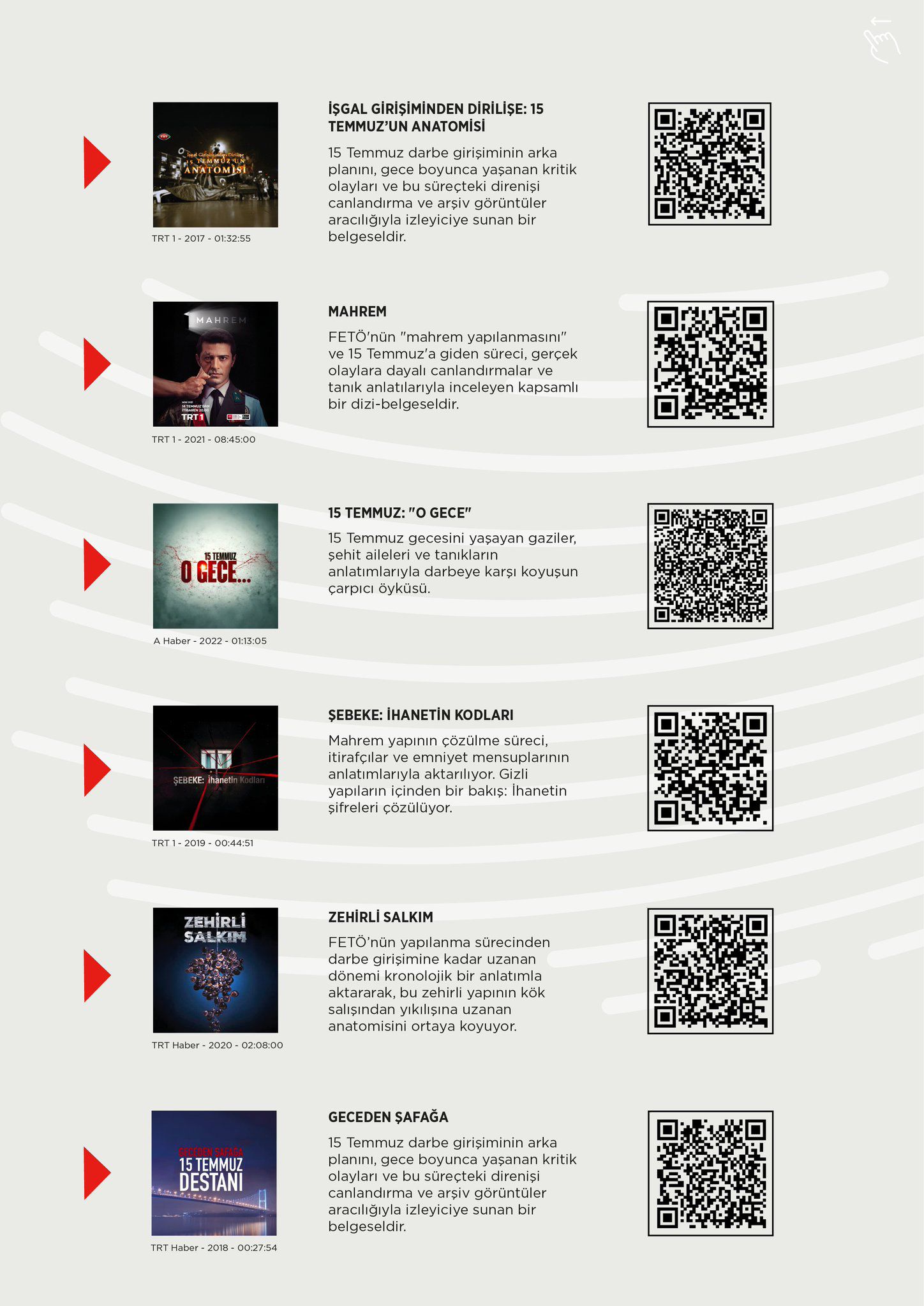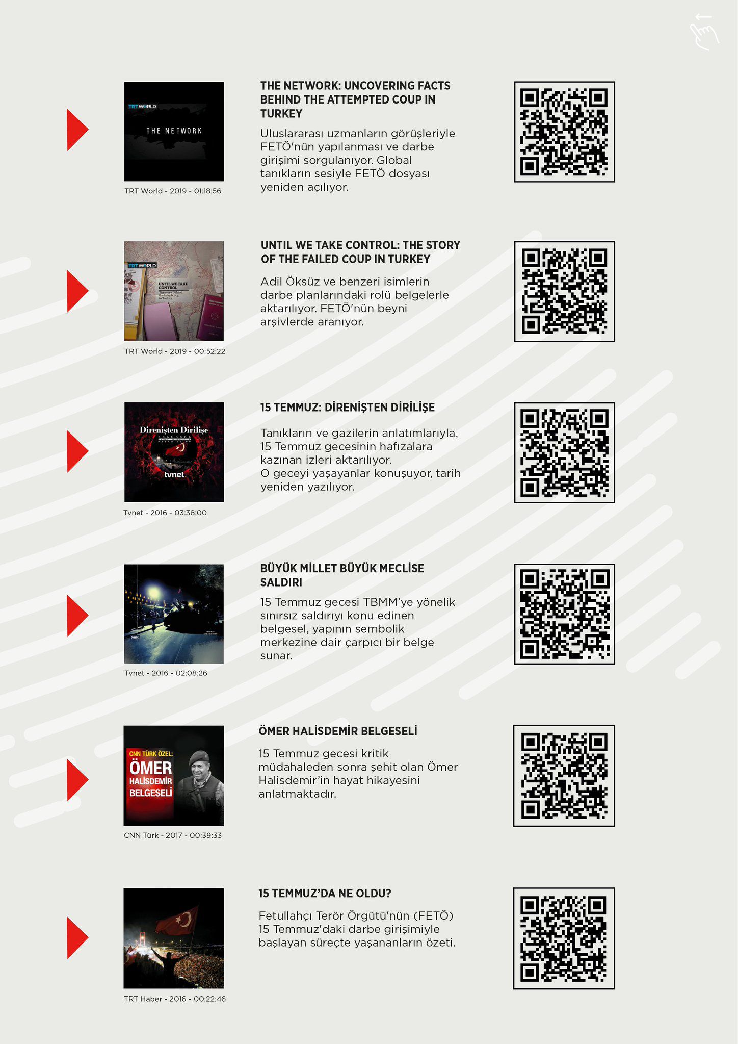 You can watch the selected documentaries below by scanning the QR codes in the visuals.