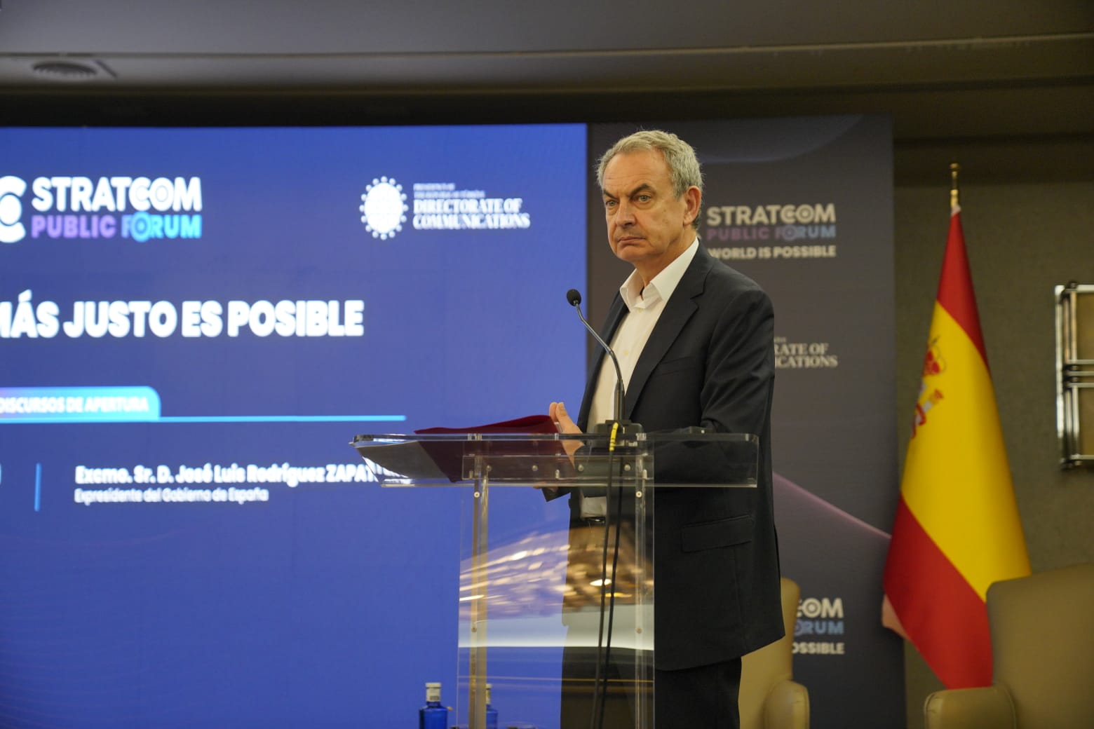 Zapatero cited the Russia-Ukraine War, the conflict sparked by Israel's attack on Iran, and Israeli genocide in Palestine as indicators of the critical period the world is facing and went on to say: