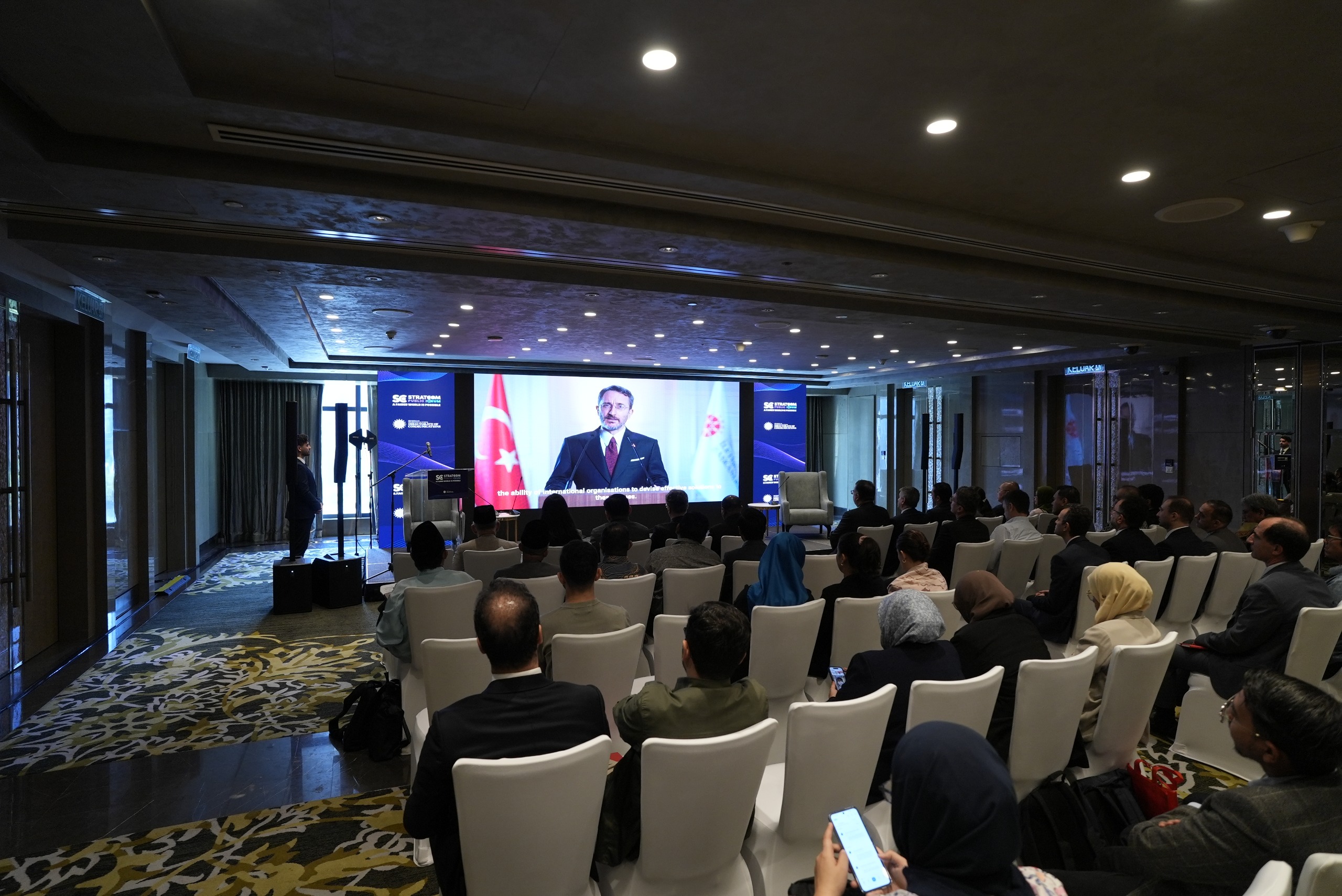 At the round of the panel series held in Kuala Lumpur, the event commenced with the screening of the "Stratcom Public Forum" themed video, followed by the presentation of a video message from the Presidency's Head of Communications, Professor Fahrettin Altun, which was sent specifically for the panel.