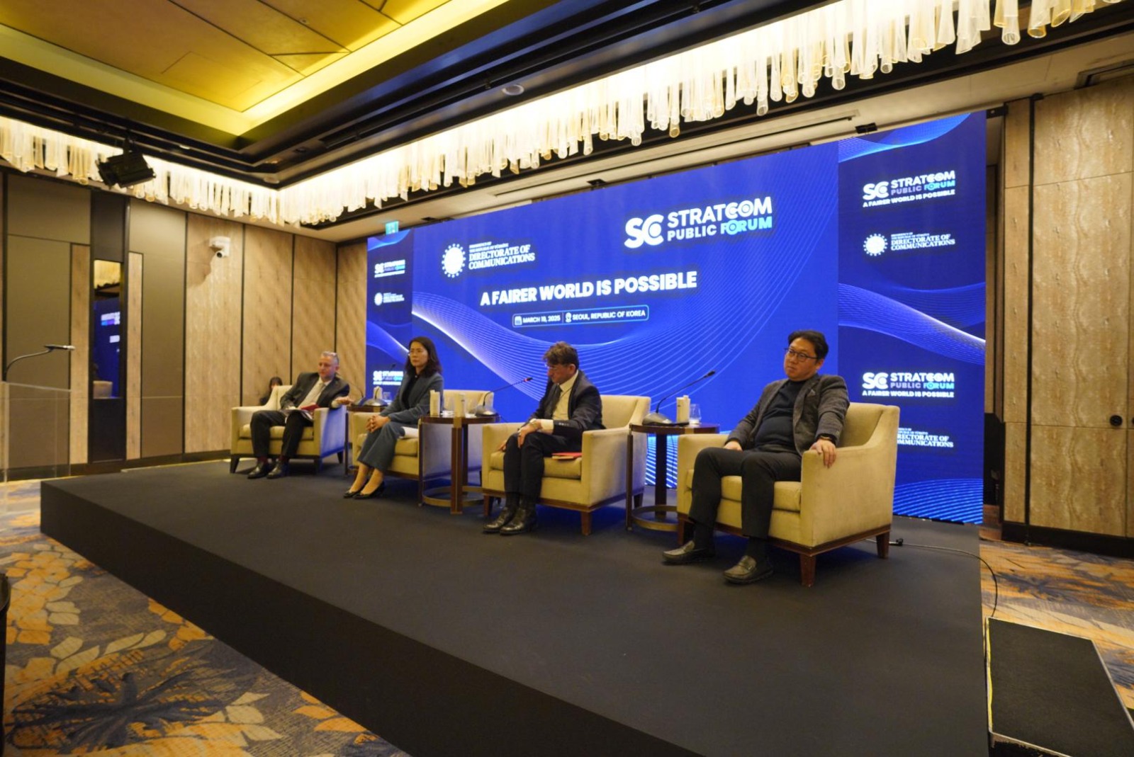 At the 16th round of the panel series held in Seoul, the event commenced with the screening of the "Stratcom Public Forum" themed video, followed by the presentation of a message from the Presidency's Head of Communications, Professor Fahrettin Altun, which was sent specifically for the panel.
