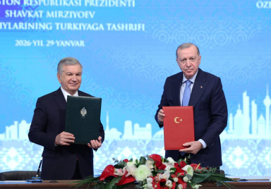 Multiple agreements were signed between the two countries in the presence of President Recep Tayyip Erdoğan and President Shavkat Mirziyoyev of Uzbekistan. Following bilateral and inter-delegation talks and the 4th meeting of the Türkiye–Uzbekistan High-Level Strategic Cooperation Council at the Presidential Complex, a signing ceremony was held to formalise various agreements between the two countries. President Recep Tayyip Erdoğan and President Shavkat Mirziyoyev of Uzbekistan signed the "Joint Declaration of the 4th Meeting of the Türkiye–Uzbekistan High-Level Strategic Cooperation Council” as well as the “Decision on Cooperation Mechanisms for Comprehensive Strategic Partnership Relations between...