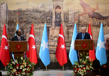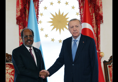 President Recep Tayyip Erdoğan met with President Hassan Sheikh Mohamud of Somalia, who is paying a visit to Türkiye, at the Dolmabahçe Presidential Office in Istanbul. President Erdoğan welcomed his Somali counterpart with an official ceremony prior to their meeting. Following the ceremony, the two leaders proceeded inside for their bilateral meeting. Source: Presidency of the Republic of Türkiye