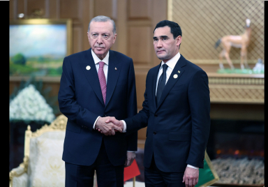 President Recep Tayyip Erdoğan met with President Serdar Berdimuhamedov of Turkmenistan on the sidelines of the International Forum on Peace and Trust in Ashgabat, Turkmenistan. Source: Presidency of the Republic of Türkiye