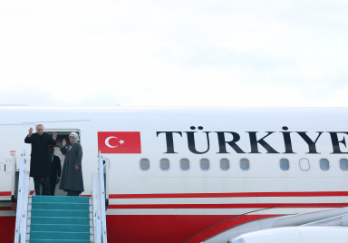 President Recep Tayyip Erdoğan has arrived in Ashgabat, Turkmenistan to attend the International Forum on Peace and Trust. President Erdoğan was welcomed at Ashgabat International Airport by Deputy Chairman of the Cabinet of Ministers of Turkmenistan Mammethan Chakyev, Türkiye’s Ambassador to Ashgabat Ahmet Demirok and other officials. First Lady Emine Erdoğan, Minister of Foreign Affairs Hakan Fidan and Minister of Energy and Natural Resources Alparslan Bayraktar are accompanying President Erdoğan in Turkmenistan. Source: Presidency of the Republic of Türkiye