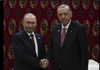 President Recep Tayyip Erdoğan met with President Vladimir Putin of Russia on the sidelines of the International Forum on Peace and Trust in Ashgabat, Turkmenistan. Source: Presidency of the Republic of Türkiye