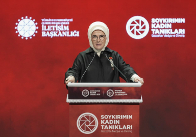 Emine Erdoğan, the wife of President Recep Tayyip Erdoğan, attended the panel titled "Women Witnesses to Genocide: Media and Resistance in Gaza," organised by our Directorate. Emine Erdoğan was greeted by Minister of Family and Social Services Mahinur Özdemir Göktaş and Presidency's Head of Communications Burhanettin Duran when she arrived at the Directorate of Communications. She then took a tour of the area that included photos of journalists killed in Israel's attacks on Gaza. Speaking at the event, Emine Erdoğan expressed gratitude to the Directorate of Communications for organising such a meaningful programme. Emine Erdo...