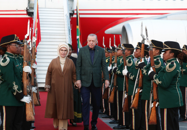 President Recep Tayyip Erdoğan has arrived in Johannesburg, where he will attend the G20 Summit on November 22-23, 2025. Upon his arrival at the OR Tambo International Airport, President Erdoğan was welcomed by Minister of Human Settlements of South Africa, Thembisile Simelane, Türkiye’s Ambassador to Pretoria Kezban Nilvana Darama Yıldırımgeç and other officials. Accompanying President Erdoğan on his visit are First Lady Emine Erdoğan, Minister of Foreign Affairs Hakan Fidan and Minister of Treasury and Finance Mehmet Şimşek. Source: Presidency of the Republic of Türkiye