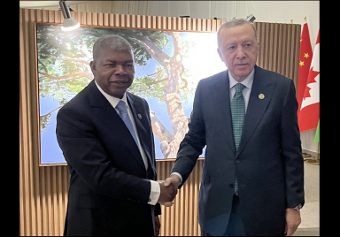 President Recep Tayyip Erdoğan met with President João Lourenço of Angola at the Johannesburg Expo Centre. AK Party Deputy Chairman and Spokesperson Ömer Çelik also attended the meeting.