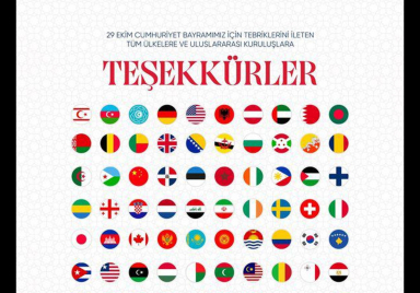 President Recep Tayyip Erdoğan expressed his gratitude to the countries and international organisations that extended their congratulations on the 102nd anniversary of the Republic through a post shared on his NSosyal account. In his post, President Erdoğan said: "On behalf of my nation, I extend my gratitude to all countries and international organisations that conveyed their kind wishes and congratulations on the 102nd anniversary of our Republic. I extend my warm greetings and heartfelt affection to the Turkish Cypriot people, the members of the Turkish diaspora around the globe, our brothers and sisters in our...