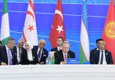 President Recep Tayyip Erdoğan met with President Shavkat Mirziyoyev of Uzbekistan, President Sadyr Japarov of Kyrgyzstan, and President Emomali Rahmon of Tajikistan in Khankendi, Azerbaijan, where he is attending the 17th Summit of the Economic Cooperation Organisation. President Erdoğan continues his various engagements at the Khankendi Congress Centre.