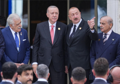 President Recep Tayyip Erdoğan met with President Ilham Aliyev of Azerbaijan on the sidelines of the 17th Summit of the Economic Cooperation Organization (ECO) in Khankendi, Azerbaijan. Source: Presidency of the Republic of Türkiye