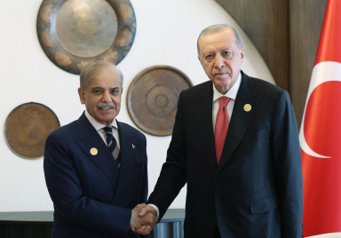 President Recep Tayyip Erdoğan met with Prime Minister Shehbaz Sharif of Pakistan on the sidelines of the 17th Summit of the Economic Cooperation Organization (ECO) in Khankendi, Azerbaijan. Source: Presidency of the Republic of Türkiye