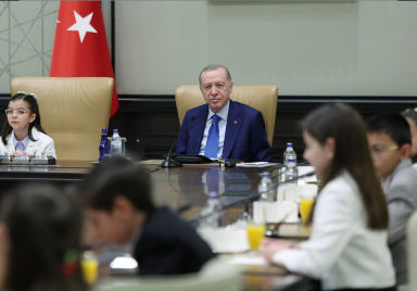 President Recep Tayyip Erdoğan received Minister of National Education Yusuf Tekin and the children accompanying him at the Presidential Complex on the occasion of the April 23rd National Sovereignty and Children’s Day. Source: Presidency of the Republic of Türkiye