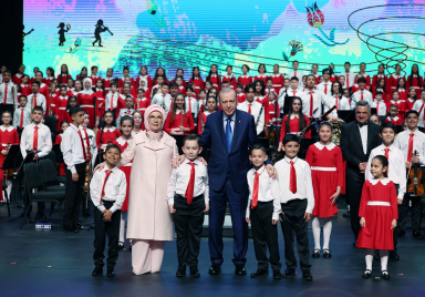 President Recep Tayyip Erdoğan and First Lady Emine Erdoğan watched the April 23rd National Sovereignty and Children’s Day Concert performed by the Presidential Children’s Choir at Beştepe Nation’s Convention and Culture Center in Ankara. Source: Presidency of the Republic of Türkiye
