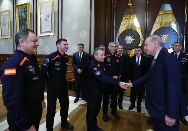 President Recep Tayyip Erdoğan received the crew of Axiom Mission 3 (Ax-3), including Türkiye’s first-ever astronaut Alper Gezeravcı, mission leader Michael López-Alegría representing the USA and Spain, pilot Walter Villadei from the Italian Air Force and Marcus Wandt from Sweden, who participated on behalf of the European Space Agency, at the Presidential Complex. Minister of Industry and Technology Mehmet Fatih Kacır was also present at the meeting. https://www.tccb.gov.tr/en/news/542/152603/president-erdogan-receives-ax-3-space-mission-crew