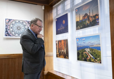 The "Century of Türkiye" exhibition, organised by our Directorate and comprising 40 images of Türkiye's historical and natural wonders, was opened at the Yunus Emre Institute in London. The exhibition's opening was attended by Türkiye's Ambassador to London, Osman Koray Ertaş, Presidency's Deputy Director of Communications, Çağatay Özdemir, Director of Yunus Emre Institute in London, Mehmet Karakuş, and many other guests. Ertaş visited the exhibition featuring 40 photographs showcasing Aegean coasts, ancient cities, historical buildings, and landscapes and received information regarding the photographs during his tour. The van with a digital screen reading "From Türkiye to the...