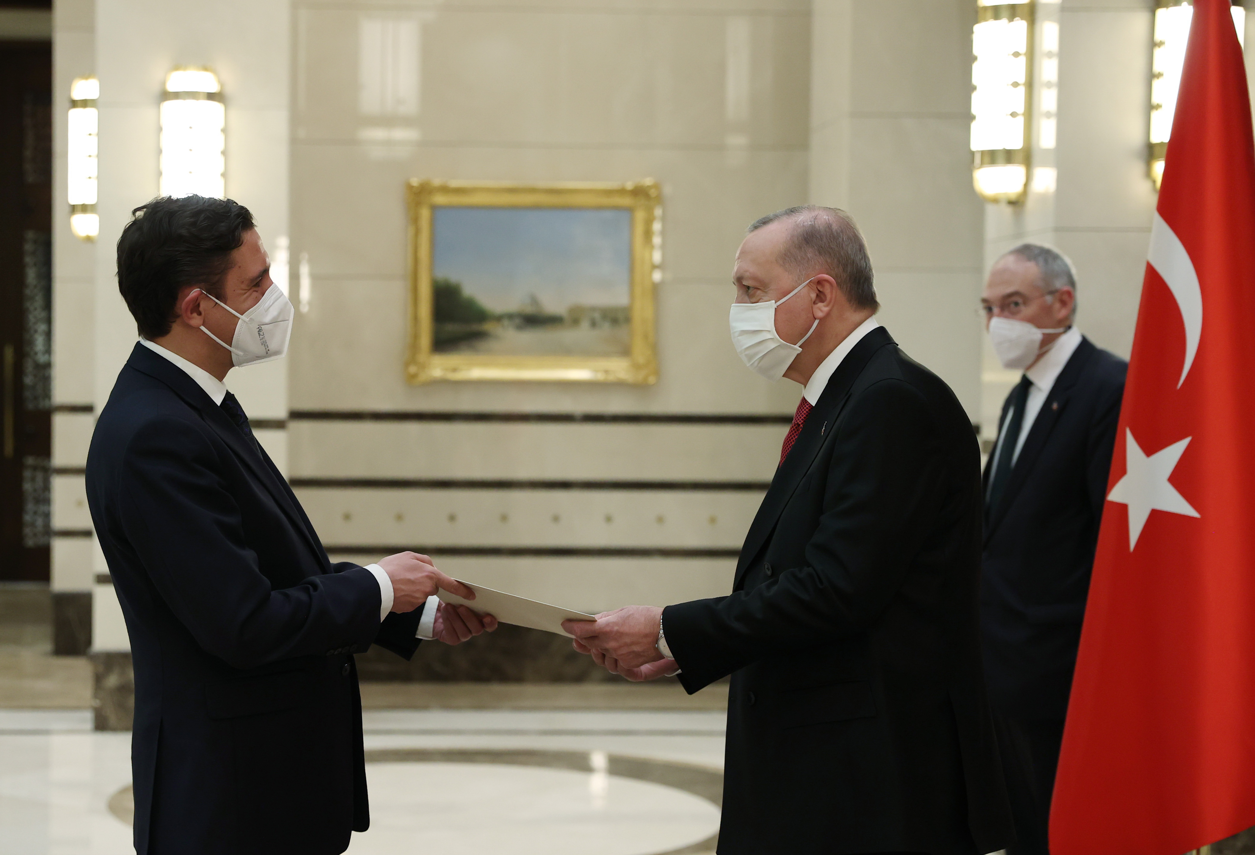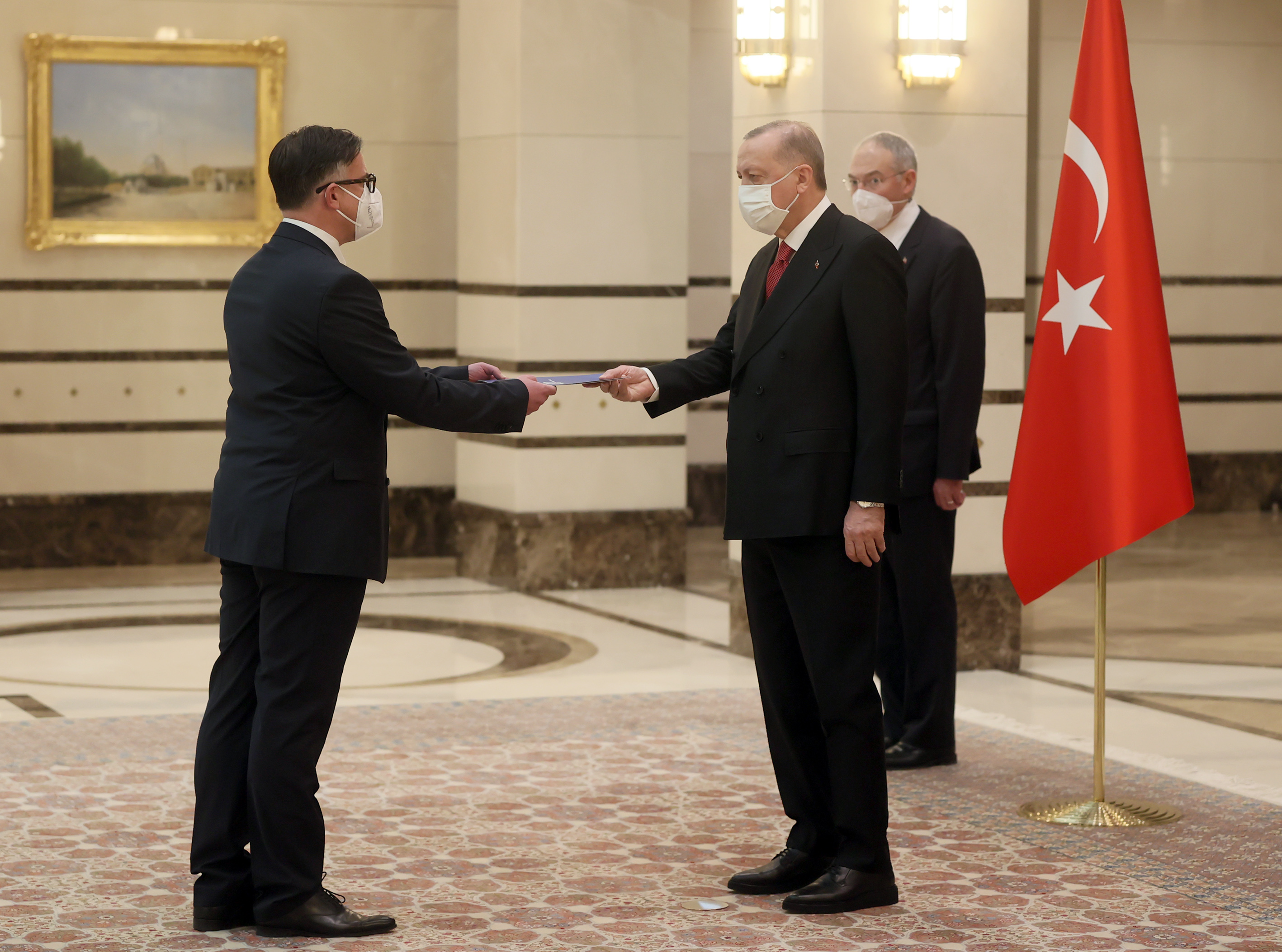 During the receptions held at the Presidential Complex, Ambassador Ştefan-Alexandru Tinca of Romania, Ambassador Elvis Antonio Alam Lora of Dominican Republic, Ambassador Cheikh Gueye of Senegal, and Ambassador Anguel Hristov Tcholakov of Bulgaria presented their letters of credence to President Erdoğan.