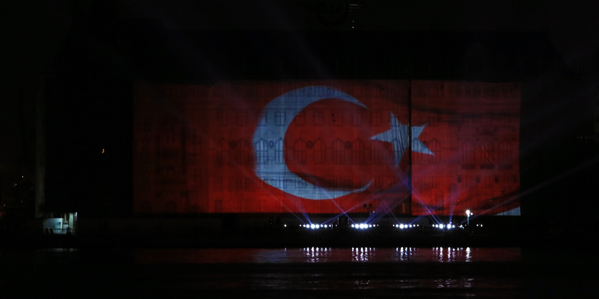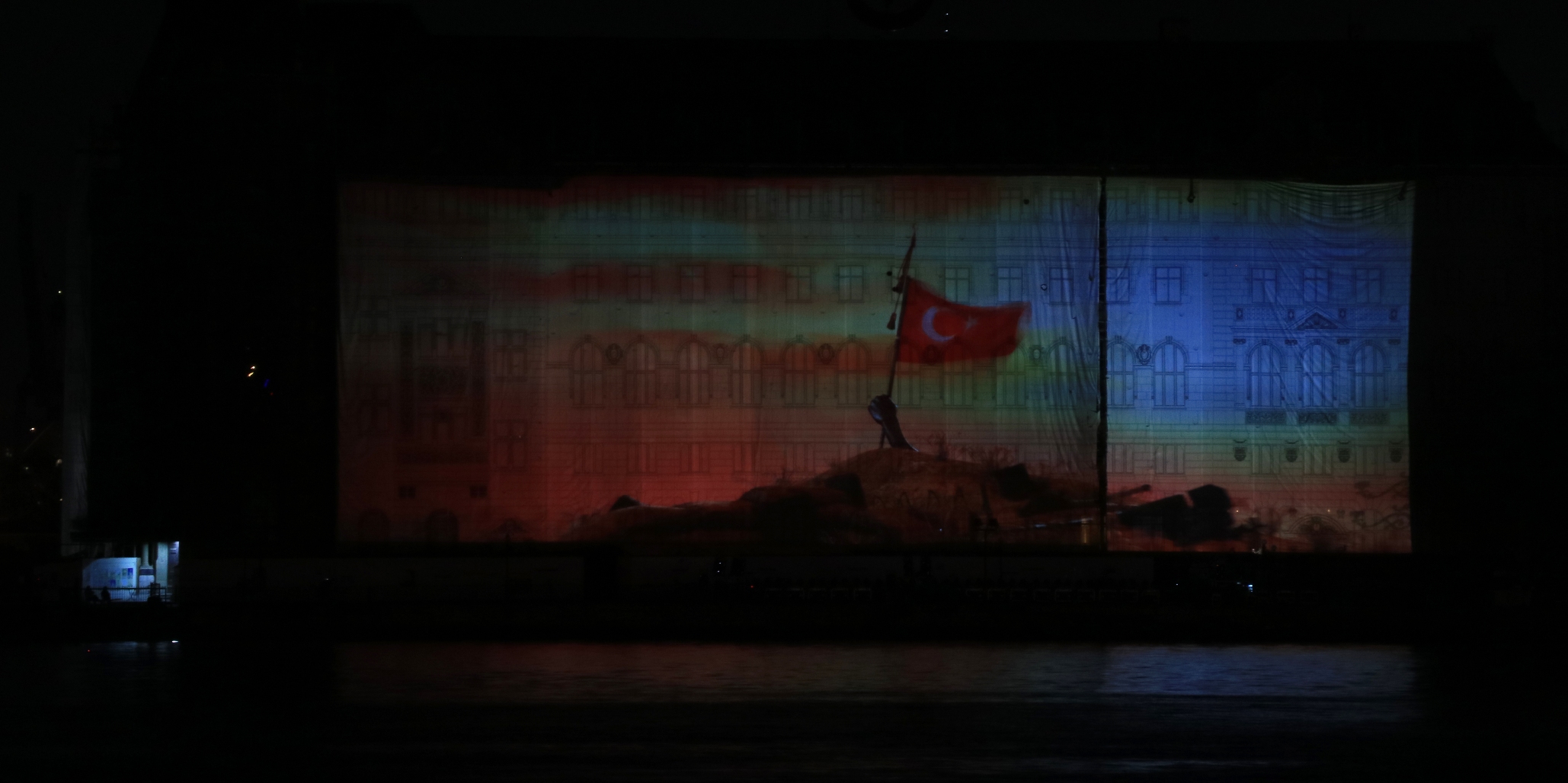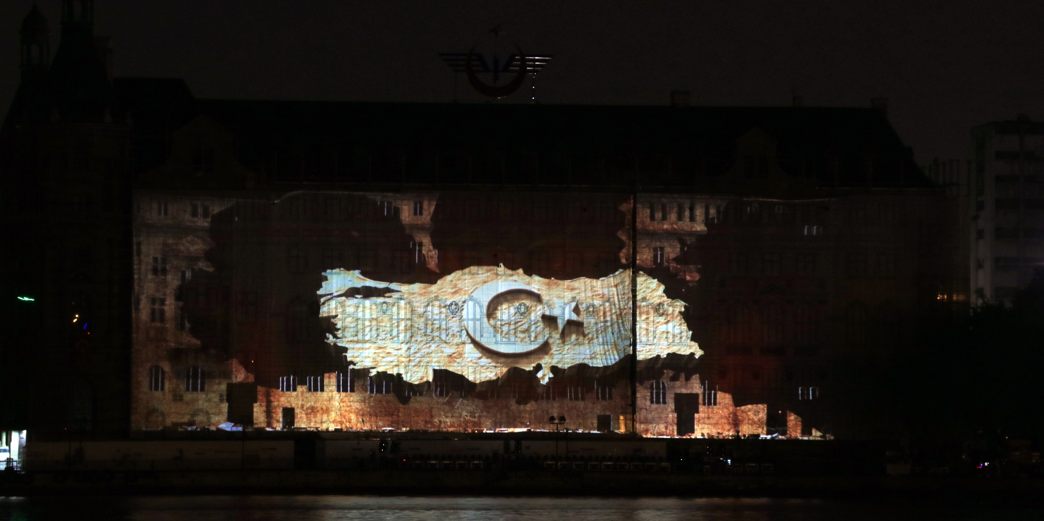 Directorate of Communications held a mapping show on the wall of Haydarpaşa Terminal building facing Kadıköy on the occasion of August 30 Victory Day and Armed Forces Day.