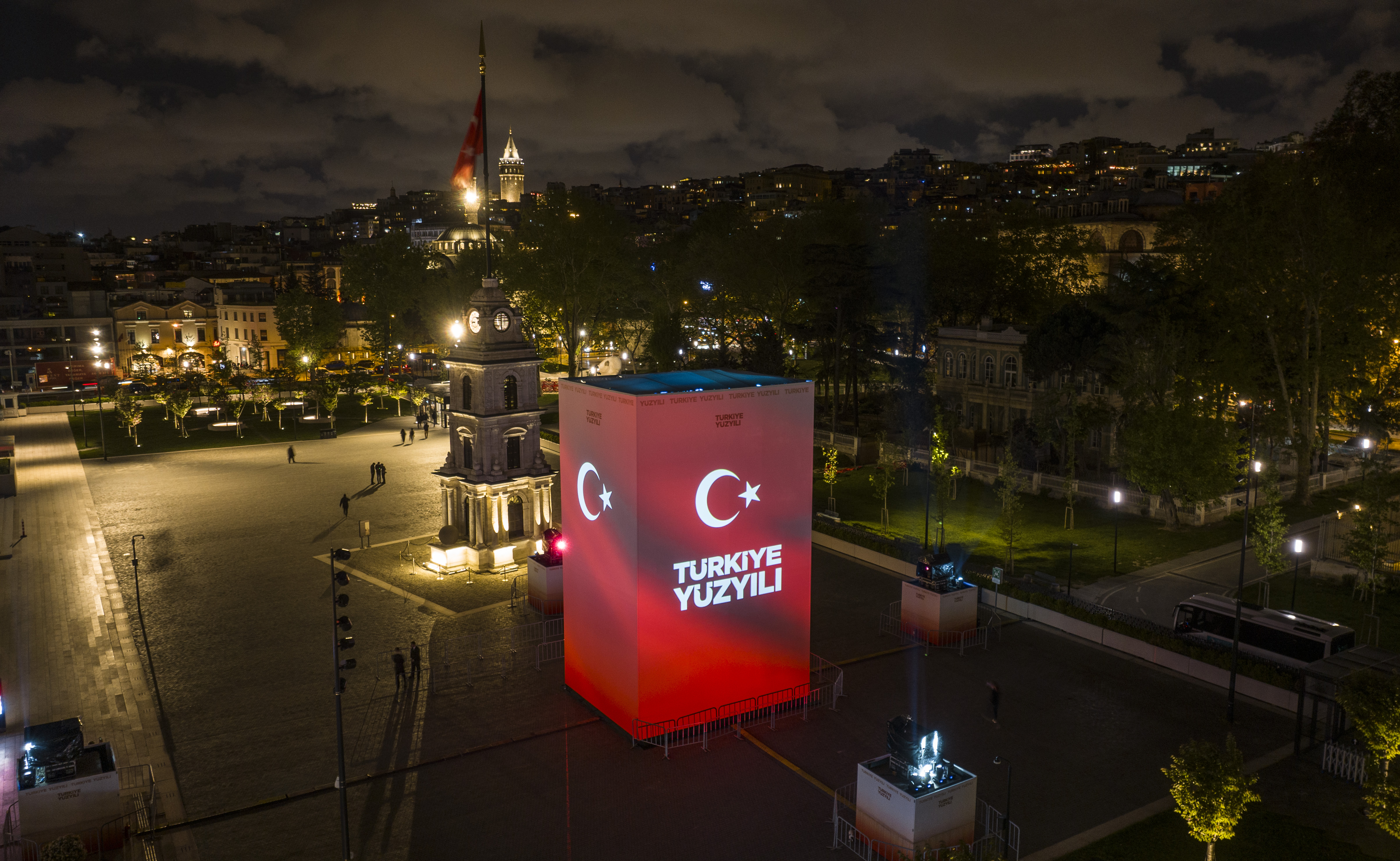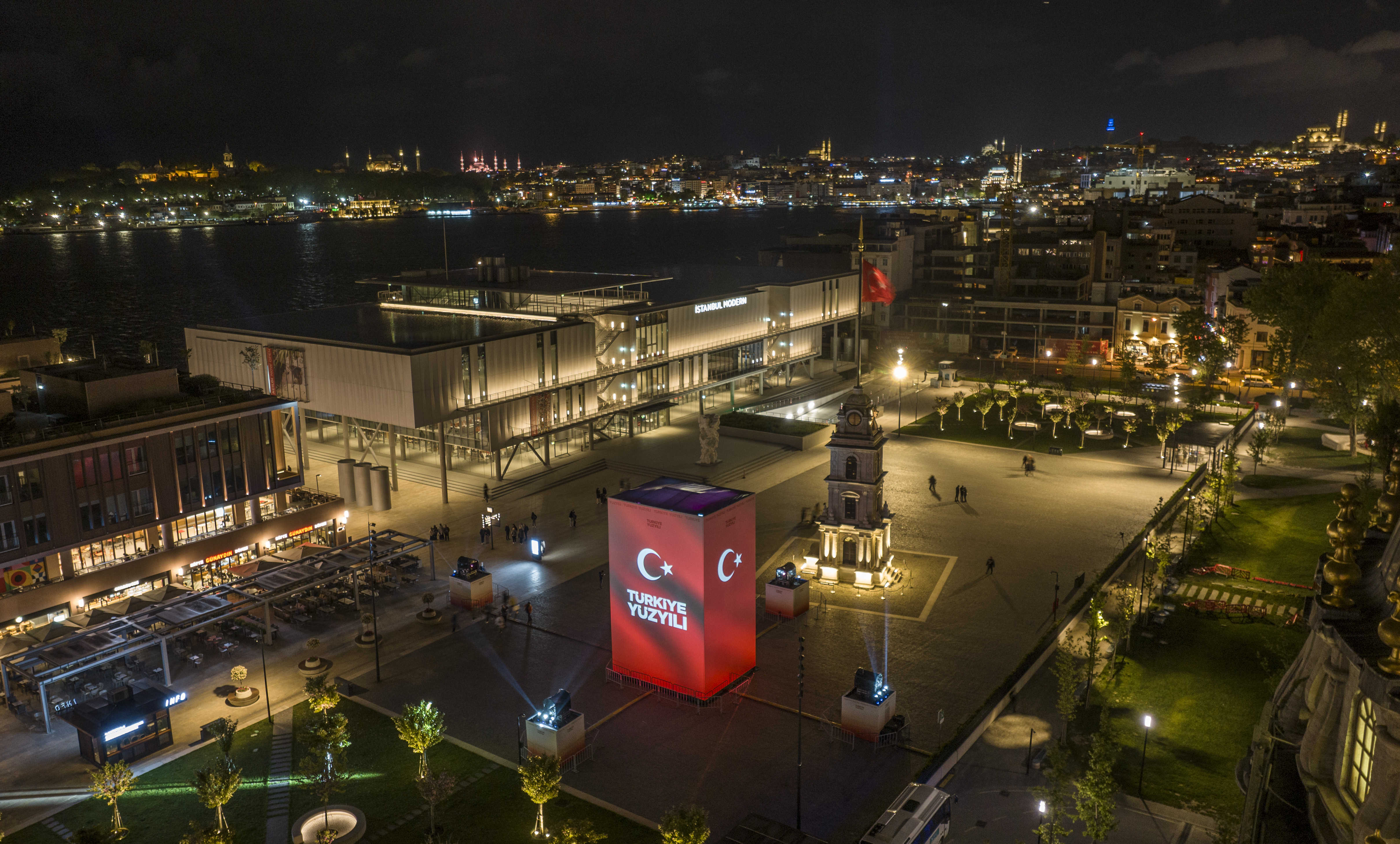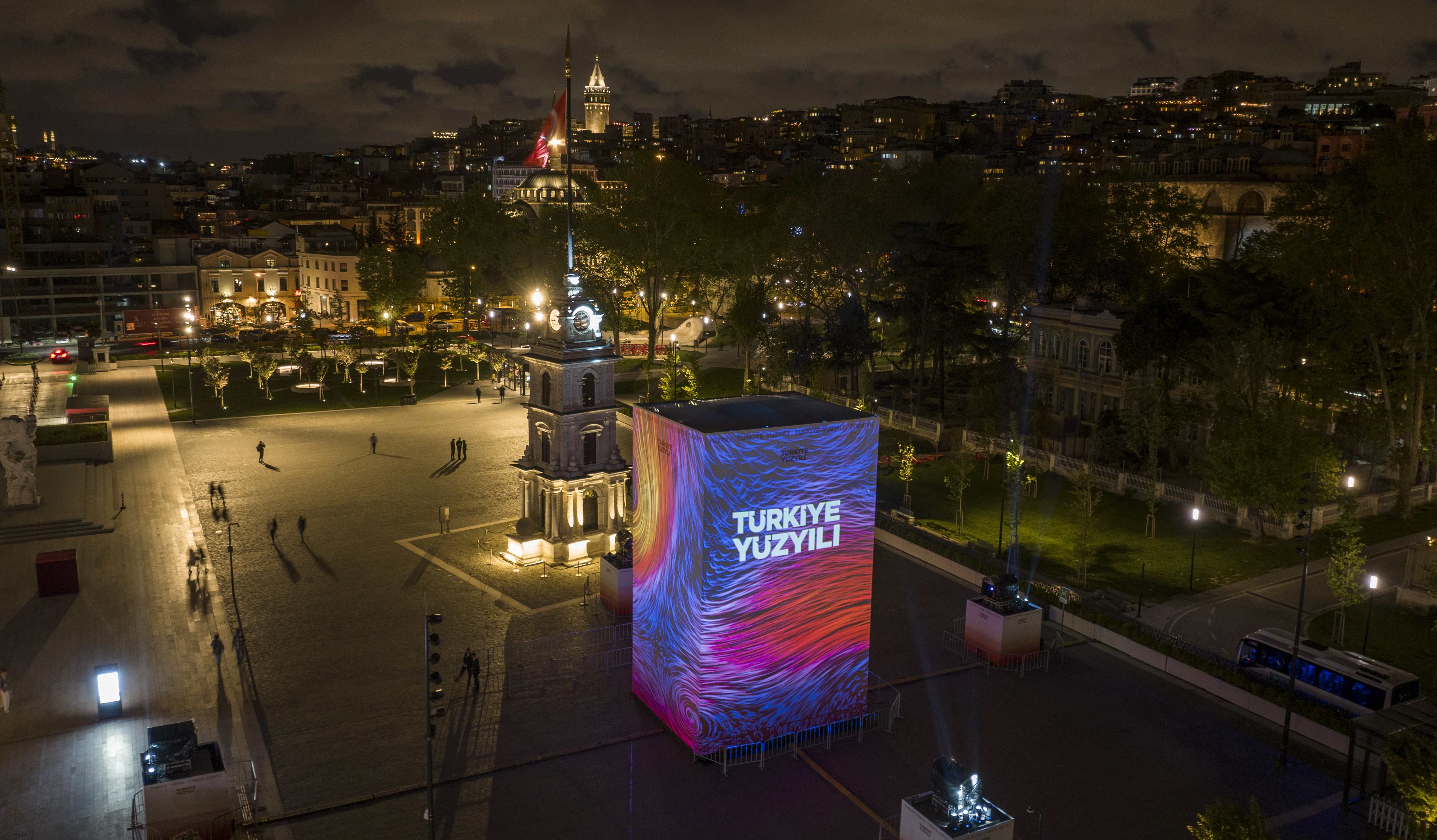 A three-storey platform has been set up at Galataport İstanbul Clock Tower Square within the framework of the project drafted under the coordination of our Directorate. The videos displayed on the platform present the projects of the past 100 years and the future to the visitors.