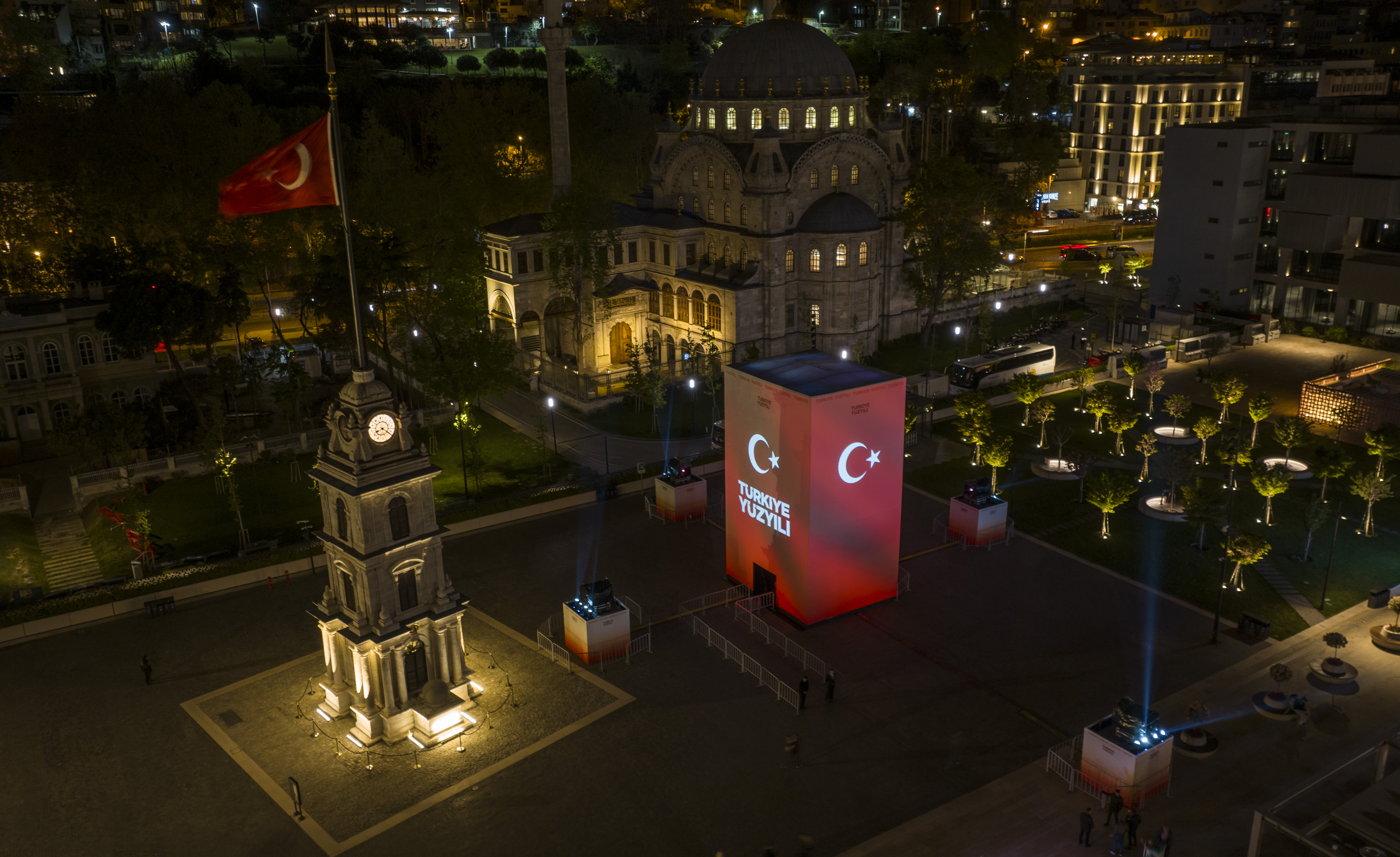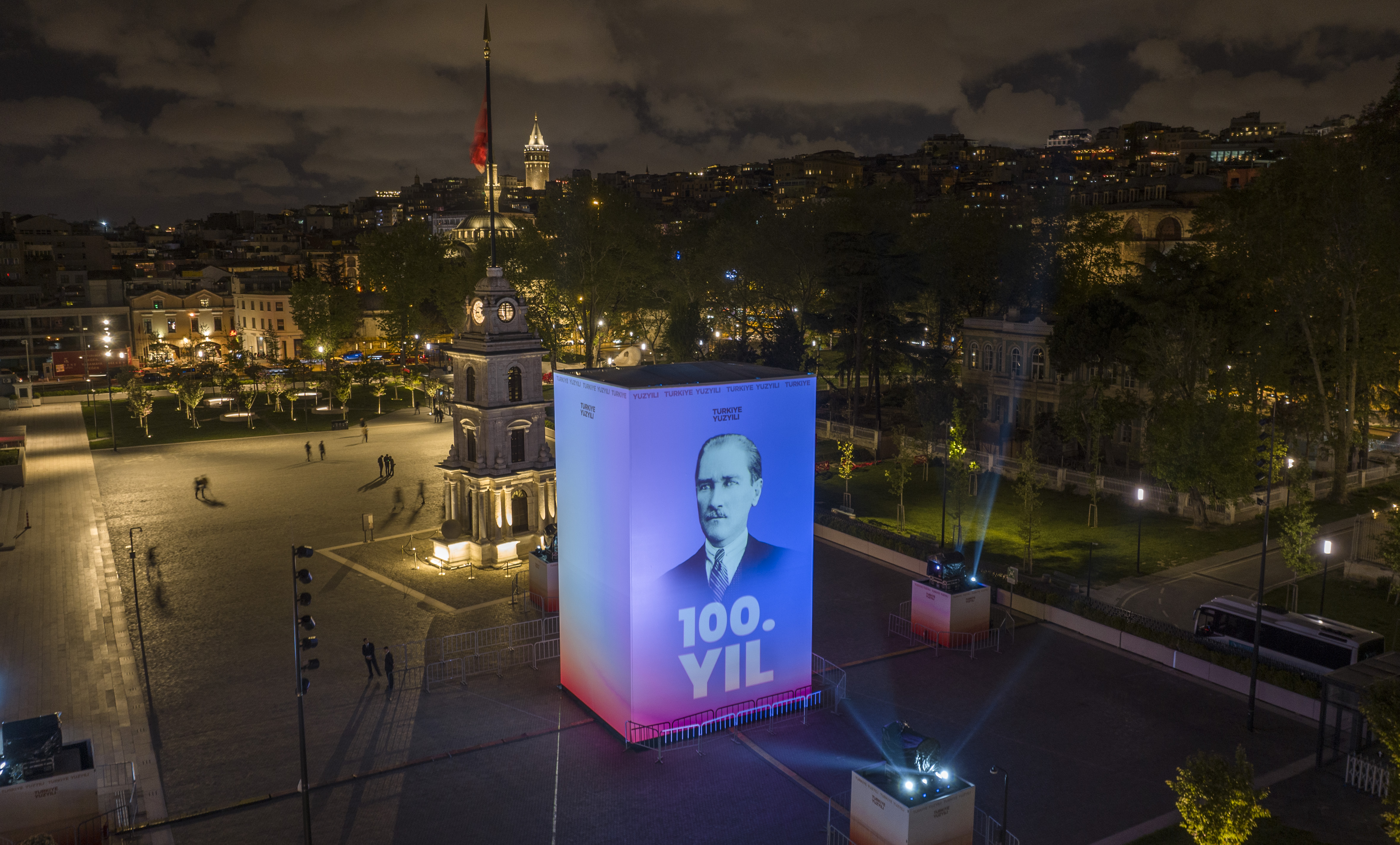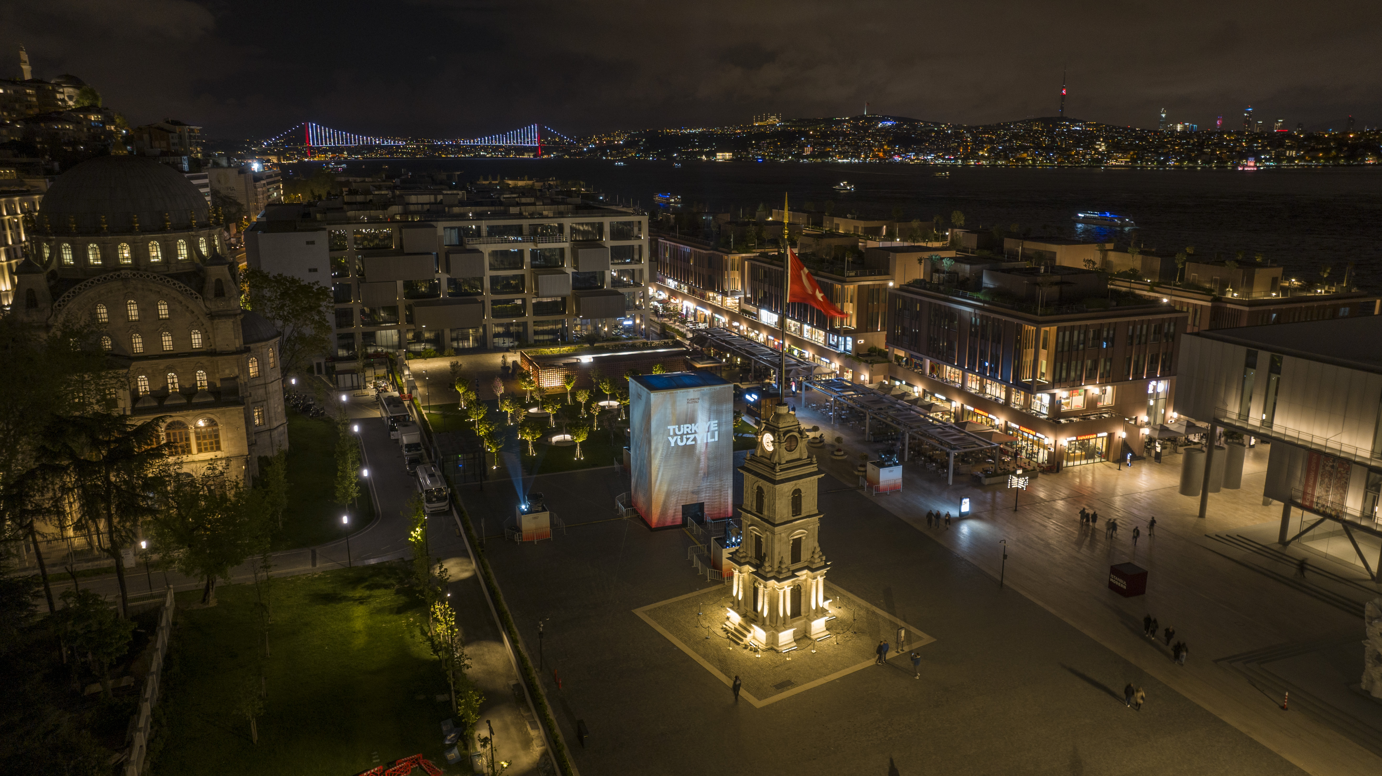 A three-storey platform has been set up at Galataport İstanbul Clock Tower Square within the framework of the project drafted under the coordination of our Directorate. The videos displayed on the platform present the projects of the past 100 years and the future to the visitors.