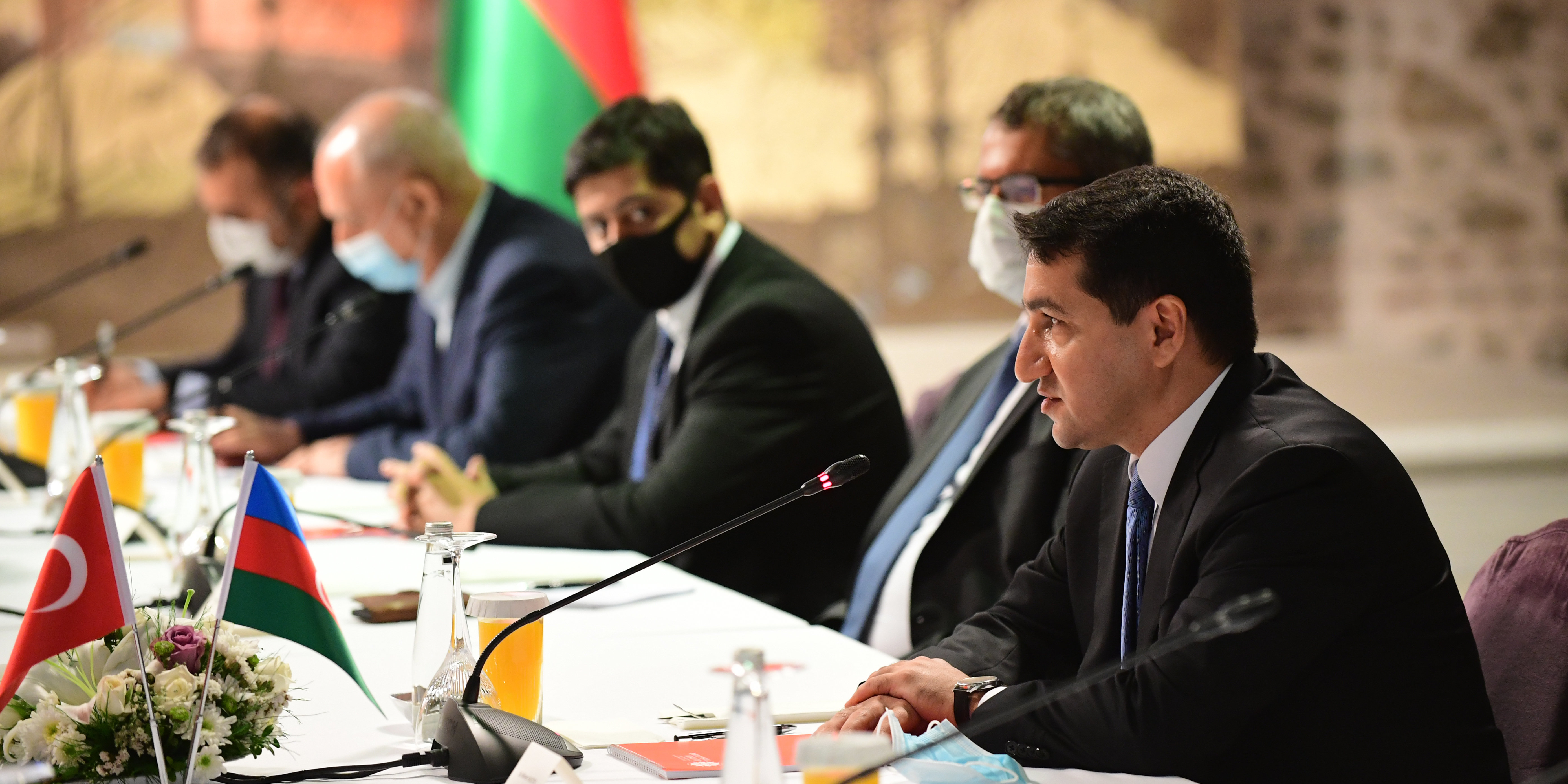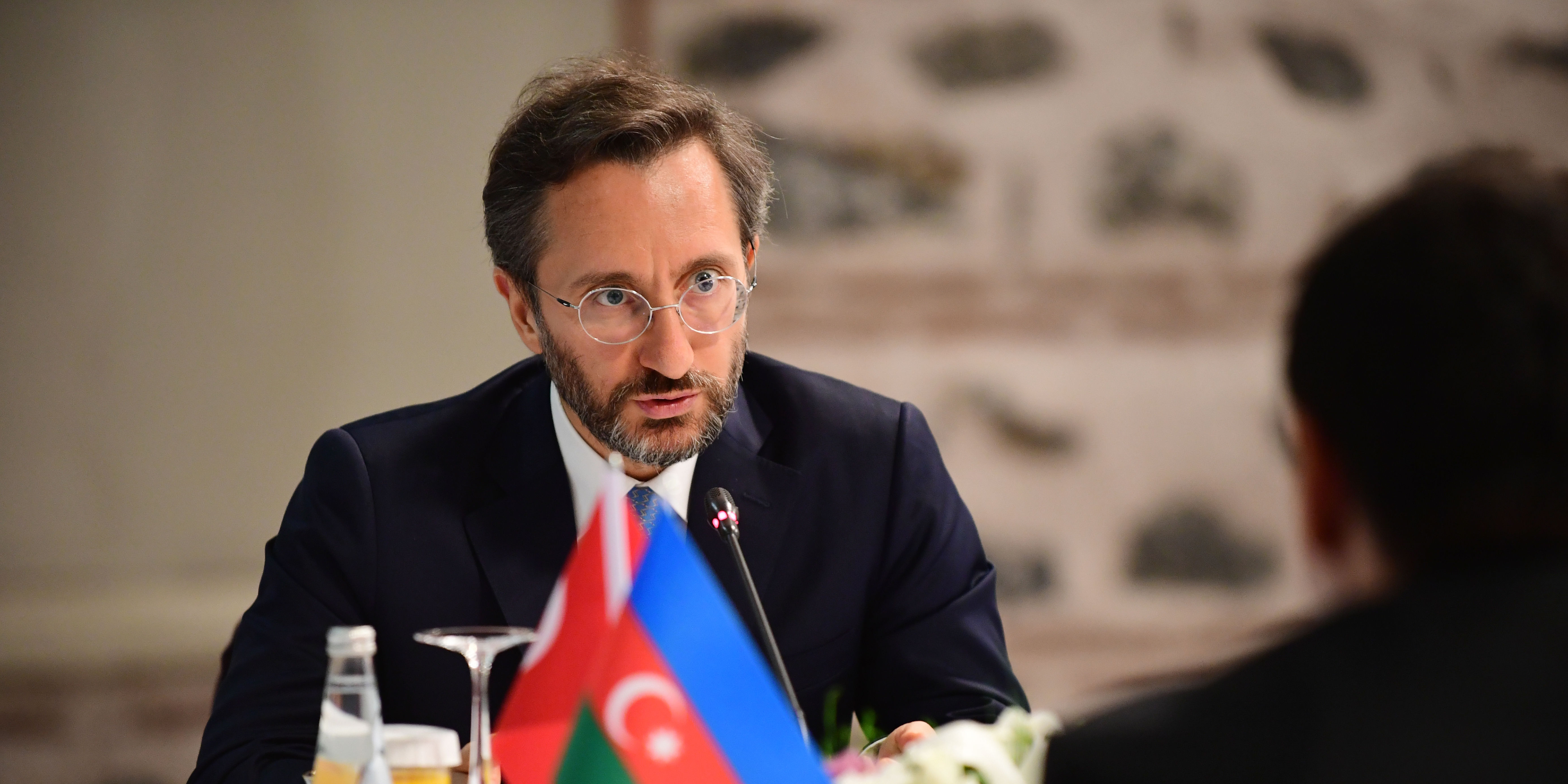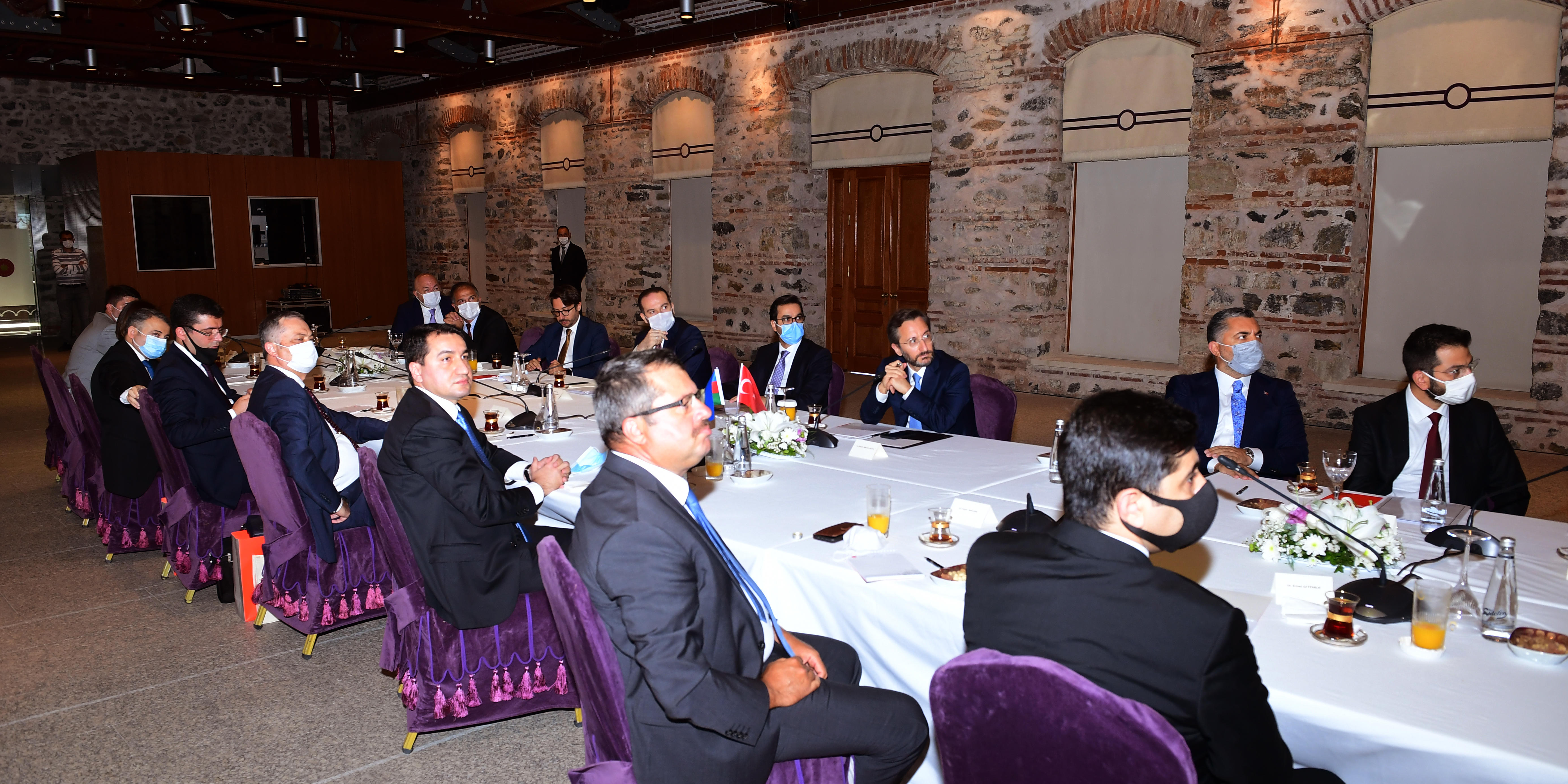 The Turkish delegation headed by Prof. Fahrettin Altun consisted of President of Radio and Television Supreme Council (RTÜK) Ebubekir Şahin, Head of the Executive Board and Director-General of the Turkish Radio and Television Corporation (TRT) İbrahim Eren, Deputy Director of Communications Assoc. Prof. Mehmet Zahid Sobacı, Deputy Director of Communications Dr. Çağatay Özdemir, General Director of Press Announcement Institution Rıdvan Duran, TRT Deputy General Director Serdar Karagöz, TRT Avaz Channel Coordinator Sedat Sağırkaya, Head of the Press Department of the Directorate of Communications Büşra Karaduman Aktuna, International Media Relations Coordinator of the Directorate of Communications Doğan Eşkinat and Communications Counsellor in Baku Hüseyin Altınalan.