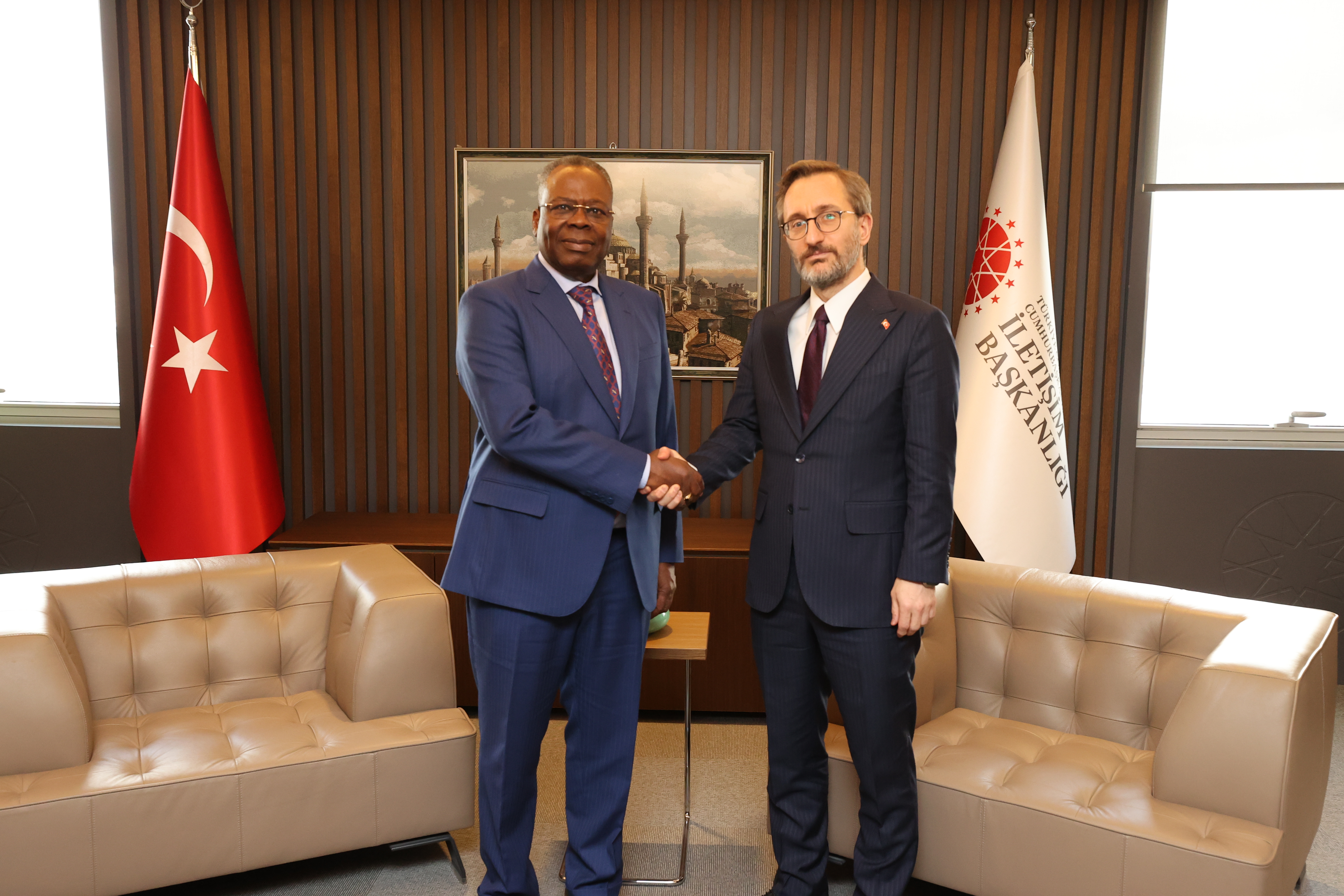Presidency's Director of Communications Fahrettin Altun met with Luc Joseph Okio, Minister Delegate to the Prime Minister in charge of State Reform of the Republic of Congo, at the Directorate of Communications.