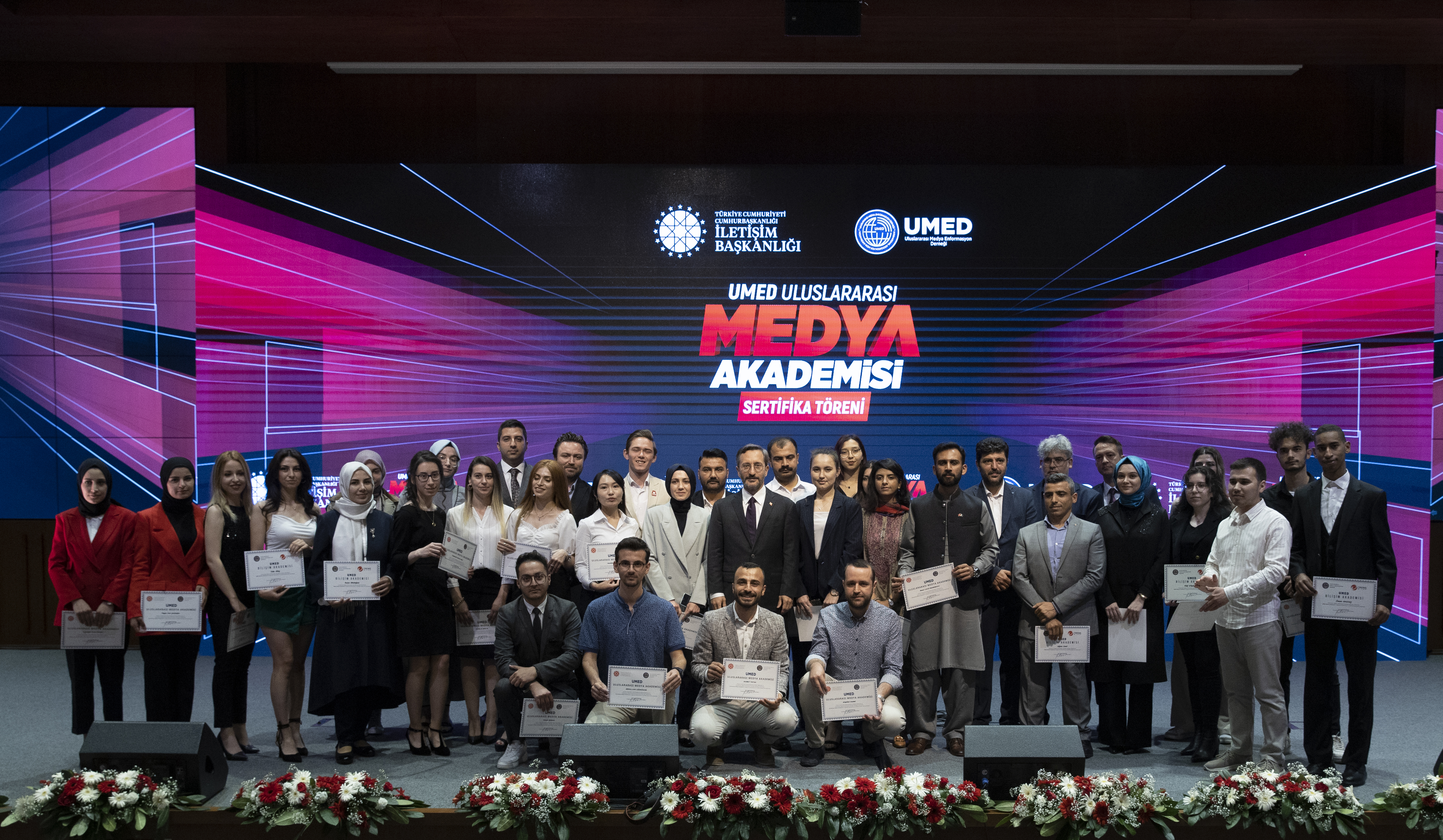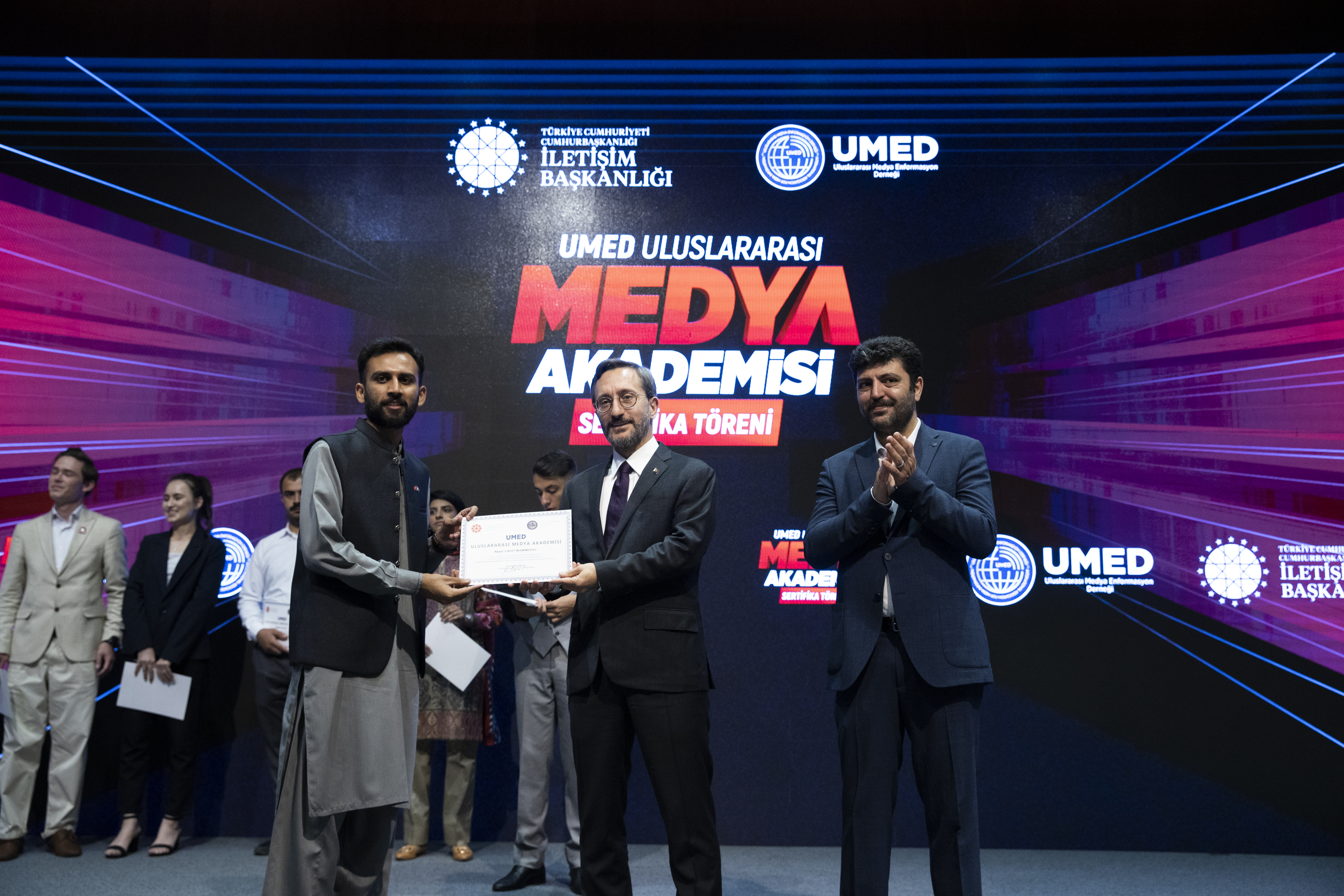 Following his remarks, Director of Communications Altun, along with President of UMED Aslan Değirmenci, awarded certificates to those who completed the International Media Academy.