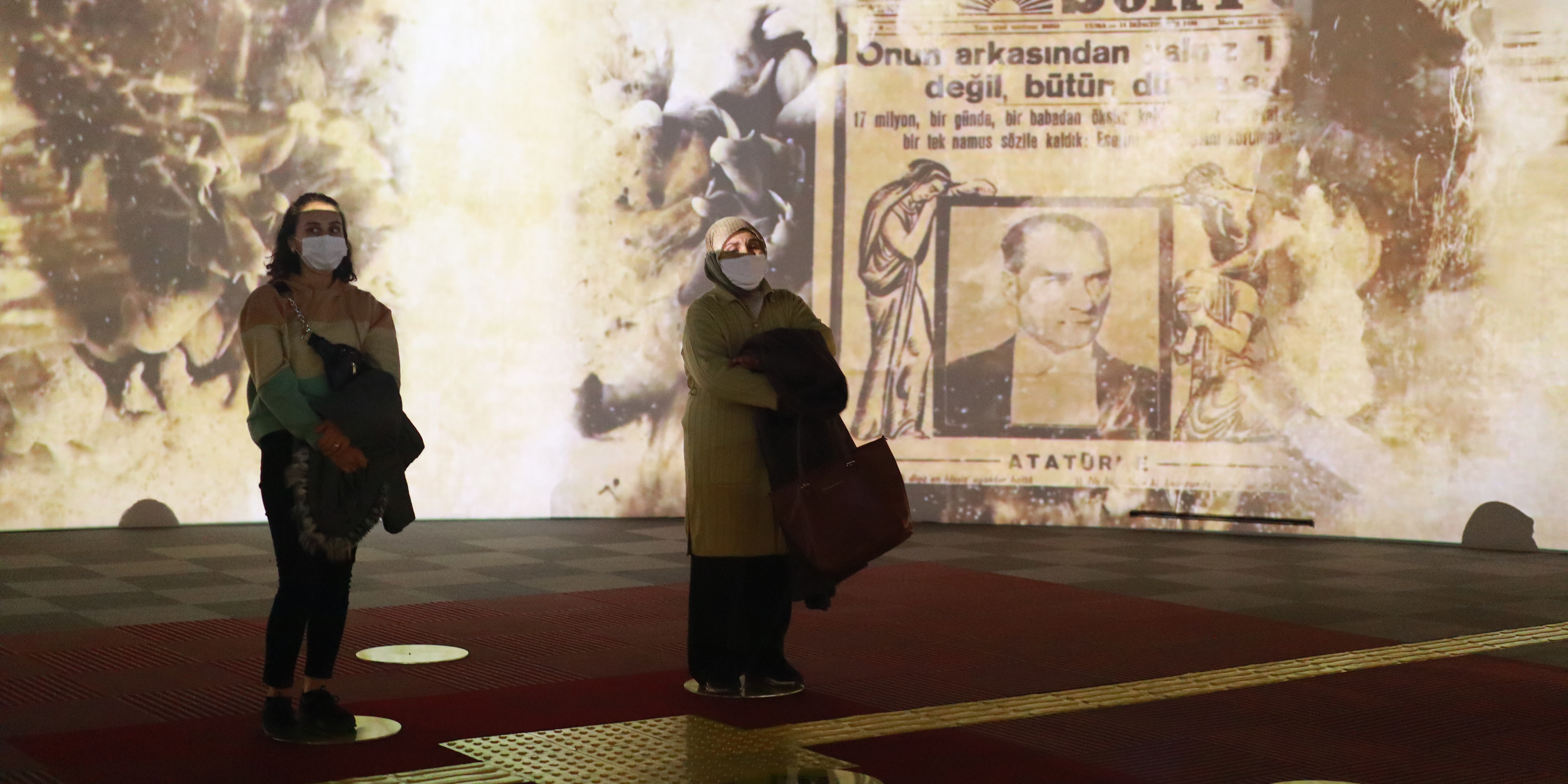 The 360-degree visual experience area in the centre is entered through a tunnel with digital display. In the 360-degree visual experience area, a display is exhibited that tells about the farewell of Ghazi Mustafa Kemal to eternity on November 10. The digital display is also enhanced by a cinematic sound system.