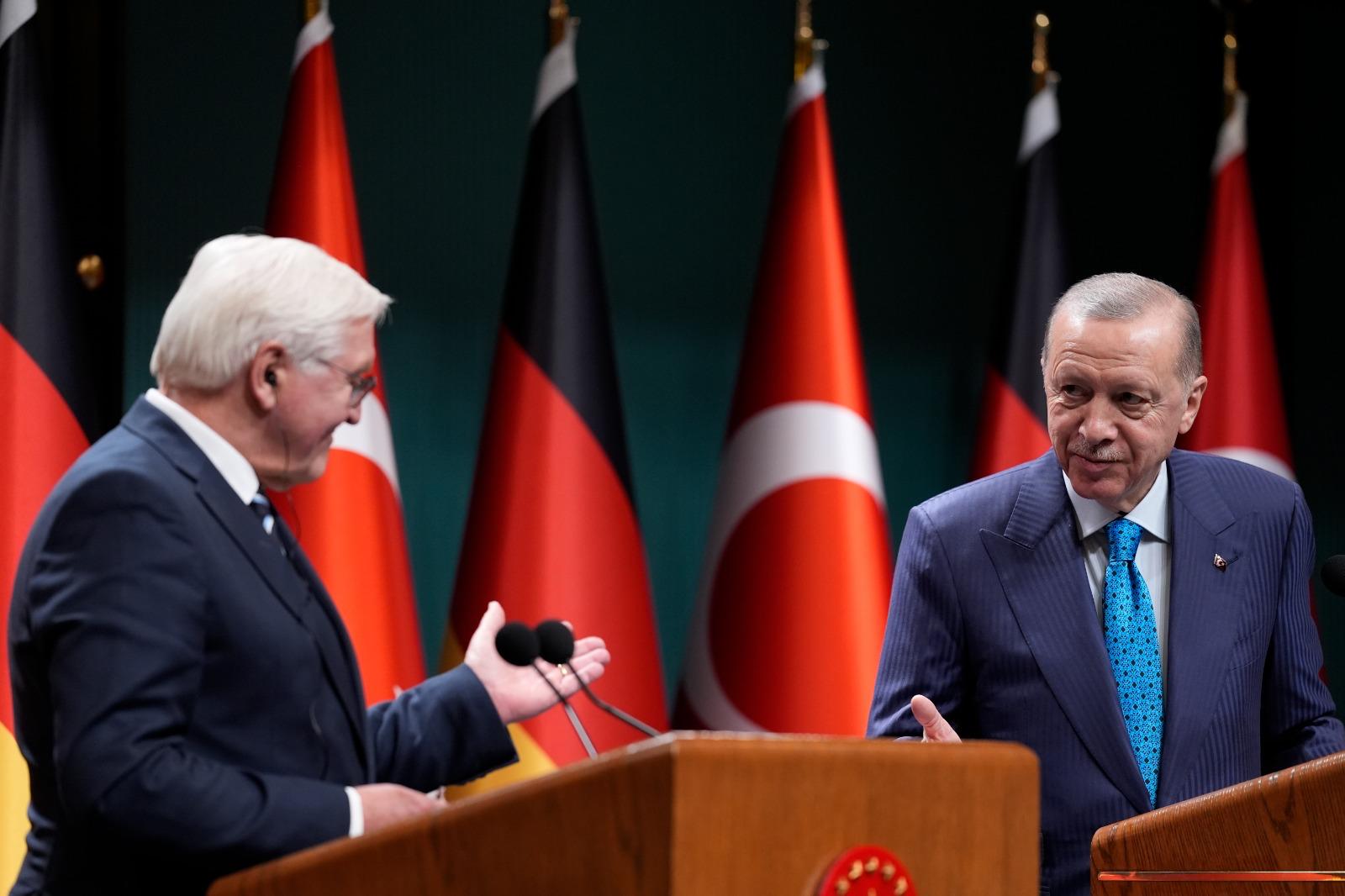 President Recep Tayyip Erdoğan and President Frank-Walter Steinmeier of the Federal Republic of Germany held a joint press conference following their bilateral meeting at the Presidential Complex.