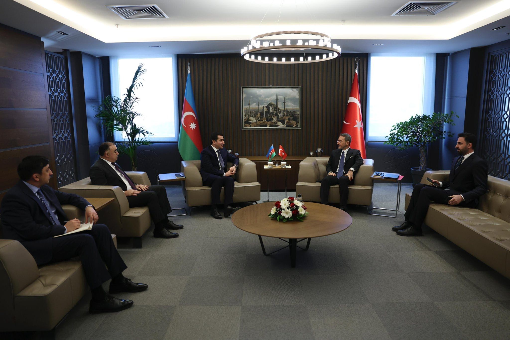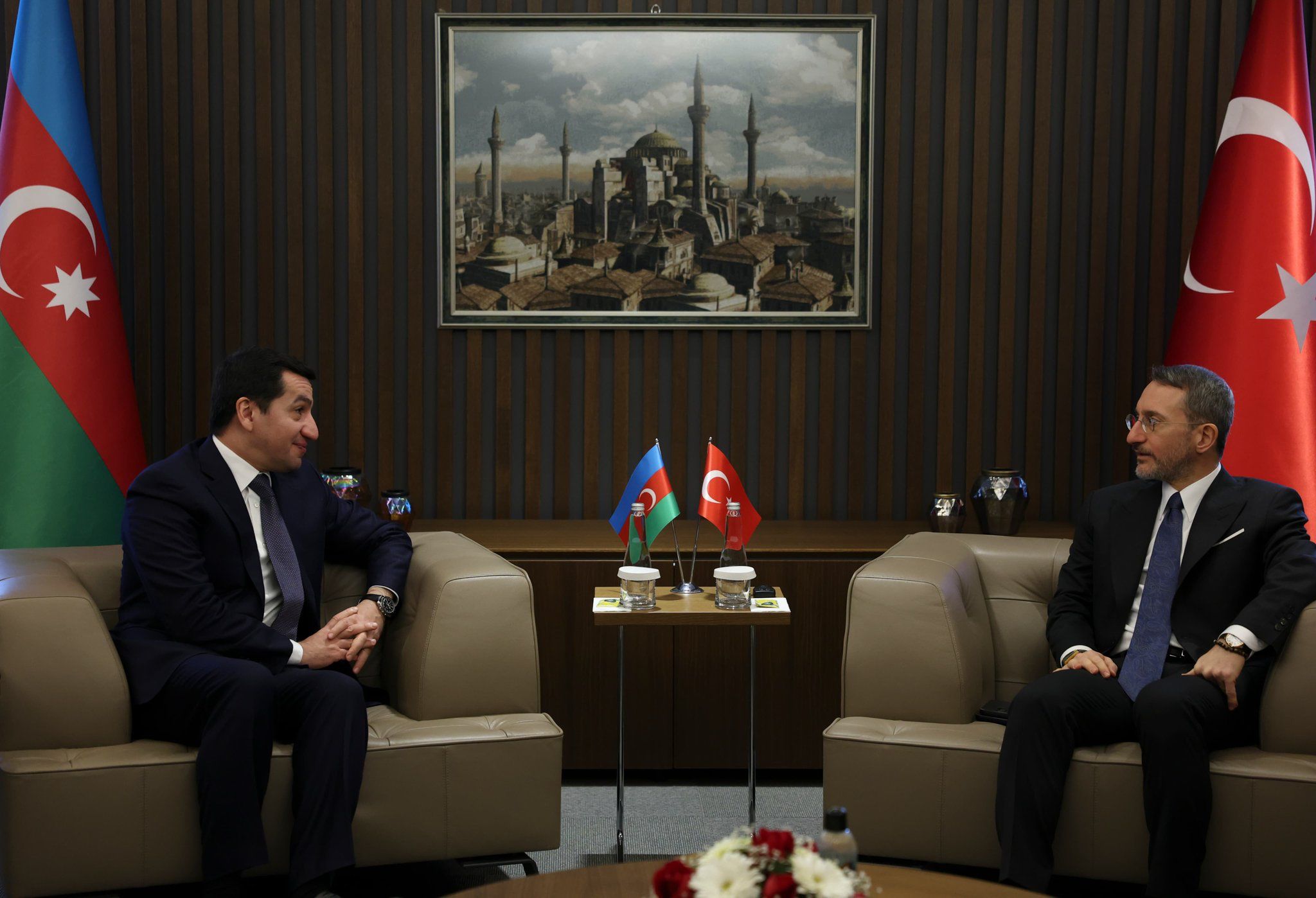 Presidency's Head of Communications Fahrettin Altun met with Hikmet Hajiyev, Assistant to the President of the Republic of Azerbaijan, at the Presidency’s Directorate of Communications.