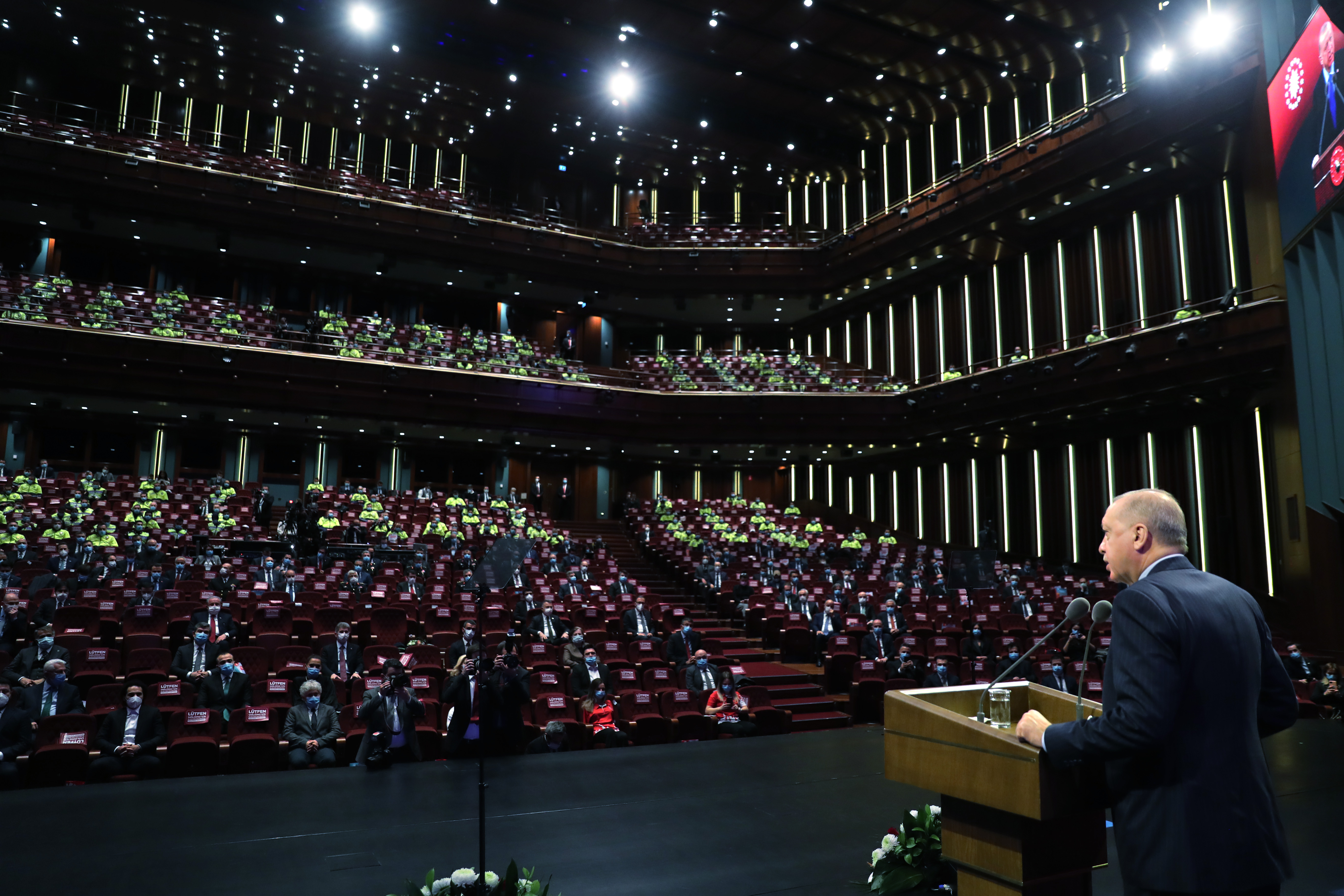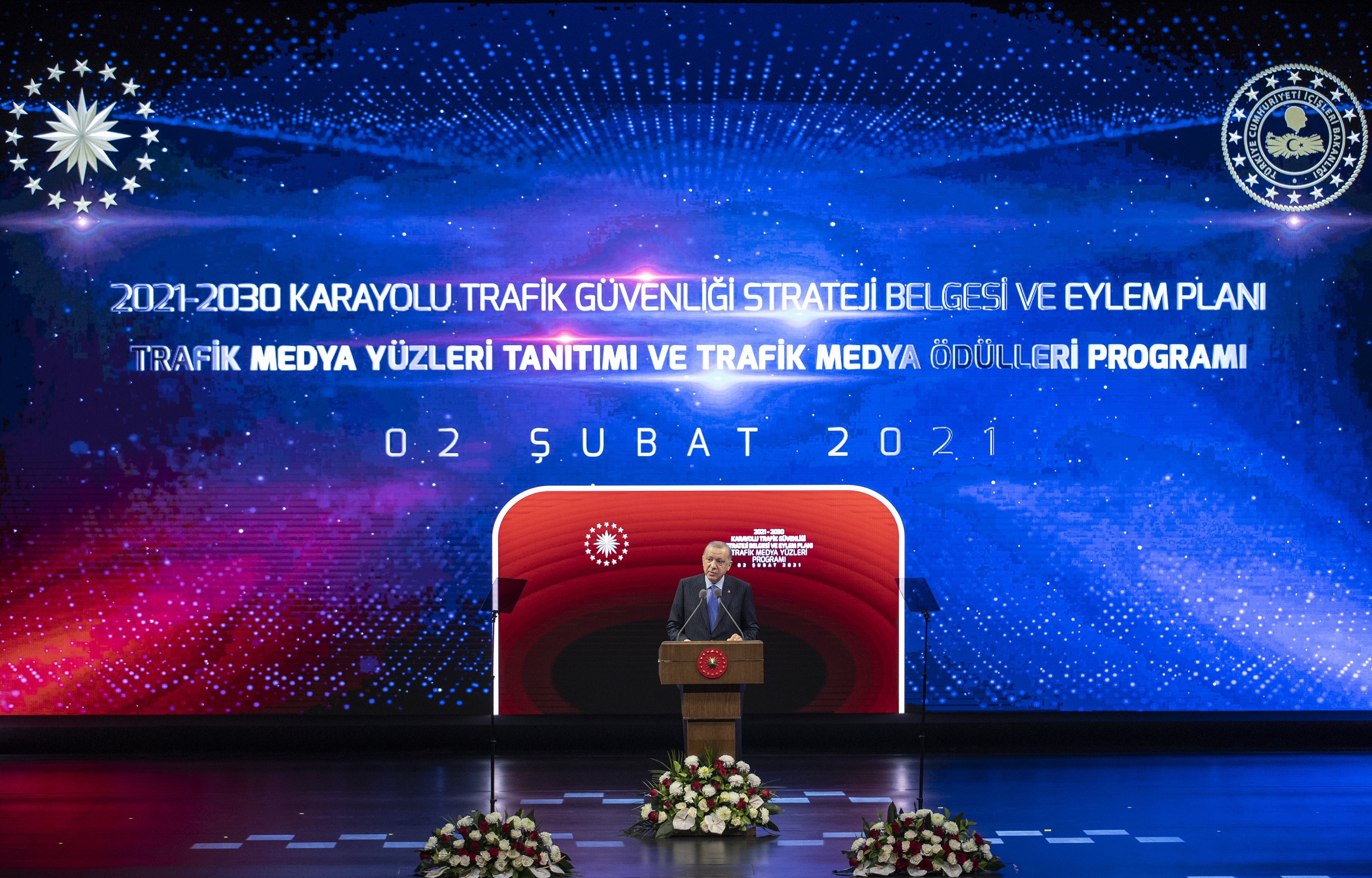 President Recep Tayyip Erdoğan delivered a speech at a publicity event for 2021-2030 Road Safety Strategy Document and Action Plan and for Road Safety Media Figures and Road Safety Media Awards Ceremony at Beştepe People’s Convention and Culture Center.