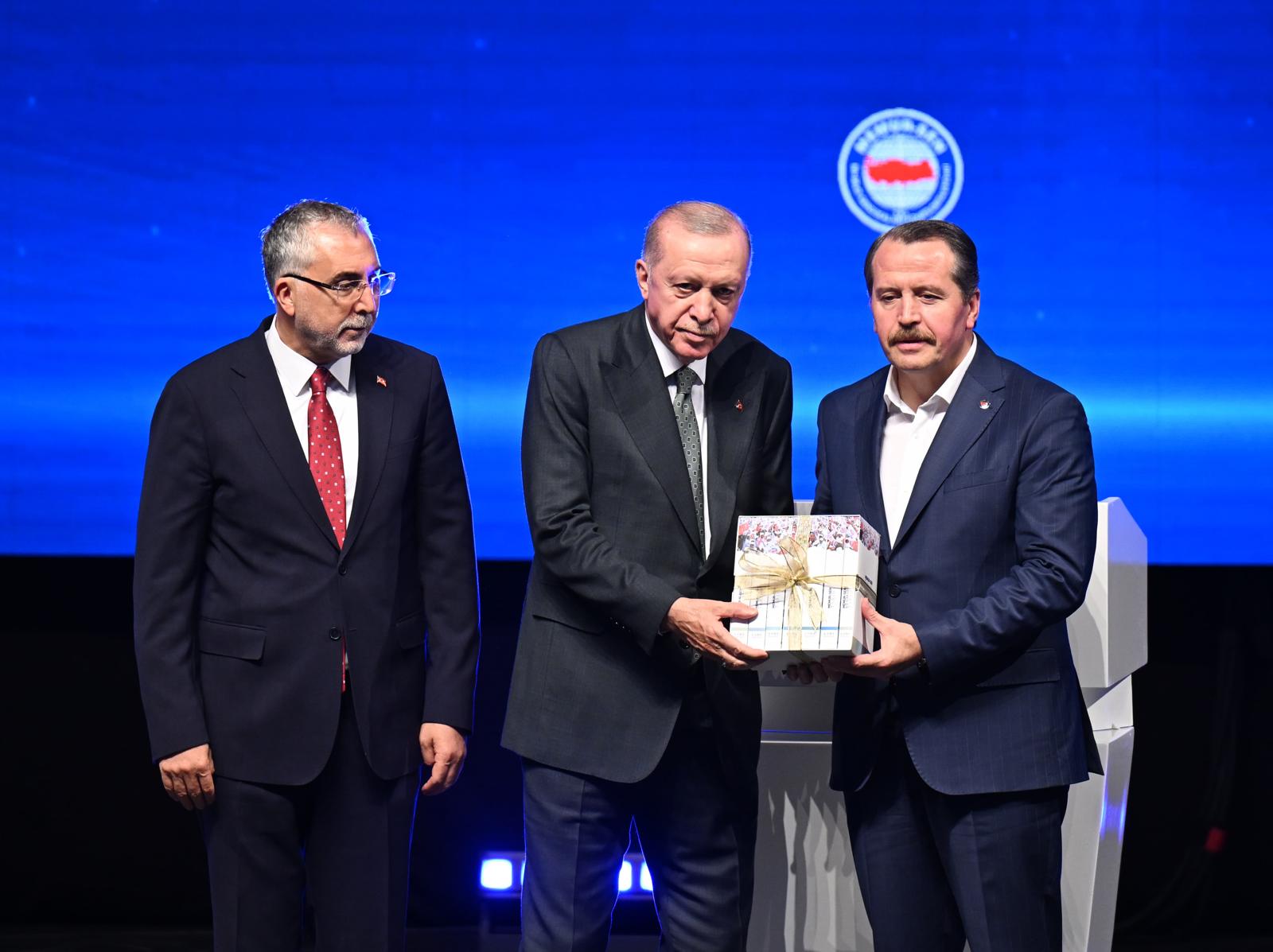 President Erdoğan said: “The efforts we have made, the steps we have taken and the reforms we have implemented for our public servants in the past 23 years are evident. As the Turkish economy has grown bigger, we have ensured that the generated added value is distributed to all the segments of the society in a just manner. It is our primary duty to duly protect the rights and improve the conditions of our public servants as well as our manufacturers, farmers, laborers and industrialists, and to not allow them to be crushed under inflation. Just as we have thus far improved the social, financial and personal rights of our public servants, we will inshallah act with the same principle in the new collective labor agreement period as well.”