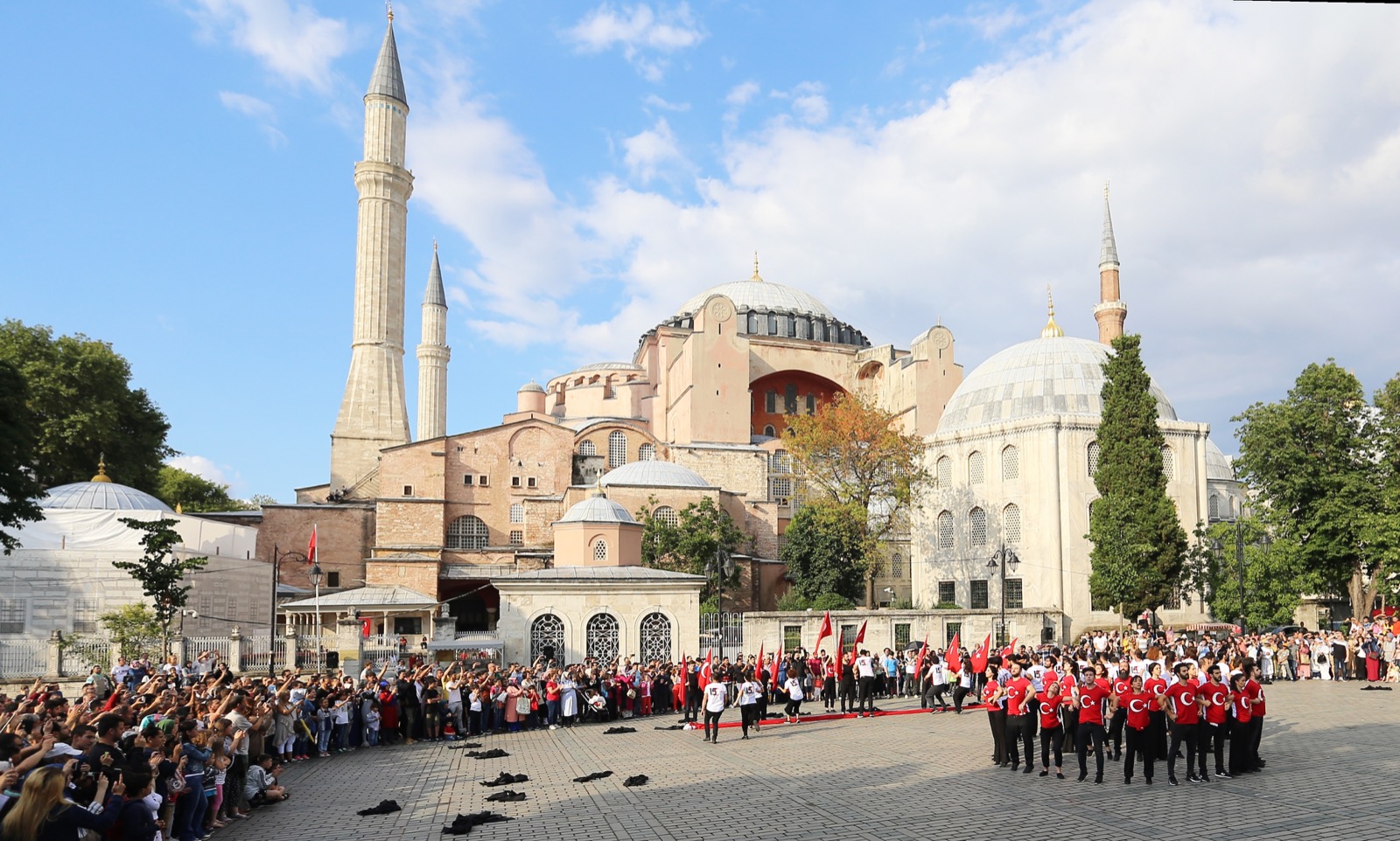 The choreography included a story that symbolized the unity, solidarity and cooperation of the Turkish nation against terrorists who were FETO members and carried out the treacherous coup attempt.