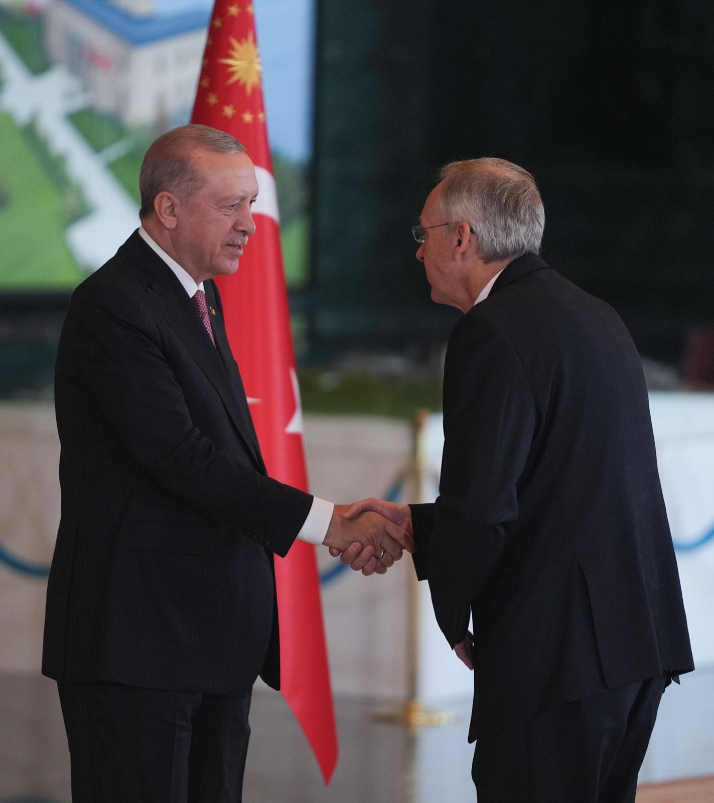 At the ceremony, national holiday congratulations was extended to President Erdoğan by Speaker of the Grand National Assembly (GNAT) Numan Kurtulmuş, Vice President Cevdet Yılmaz, AK Party Parliamentary Group Chairman Abdullah Güler, President of the Court of Cassation Ömer Kerkez, President of the Council of State Zeki Yiğit, members of the Presidential Cabinet, Chief of the General Staff General Selçuk Bayraktaroğlu and the commanders-in-chief of armed forces, President of Religious Affairs Safi Arpaguş, members of the GNAT, Secretary-General of the Presidency Hakkı Susmaz, Presidency's Head of Communications Burhanettin Duran, Director of National Intelligence Organisation (MİT) İbrahim Kalın, President of Defence Industries Haluk Görgün, Governor of Ankara Vasip Şahin, Mayor of Ankara Mansur Yavaş, senior officials of public institutions, ambassadors to Ankara, heads of foreign missions, and representatives of international organisations.
