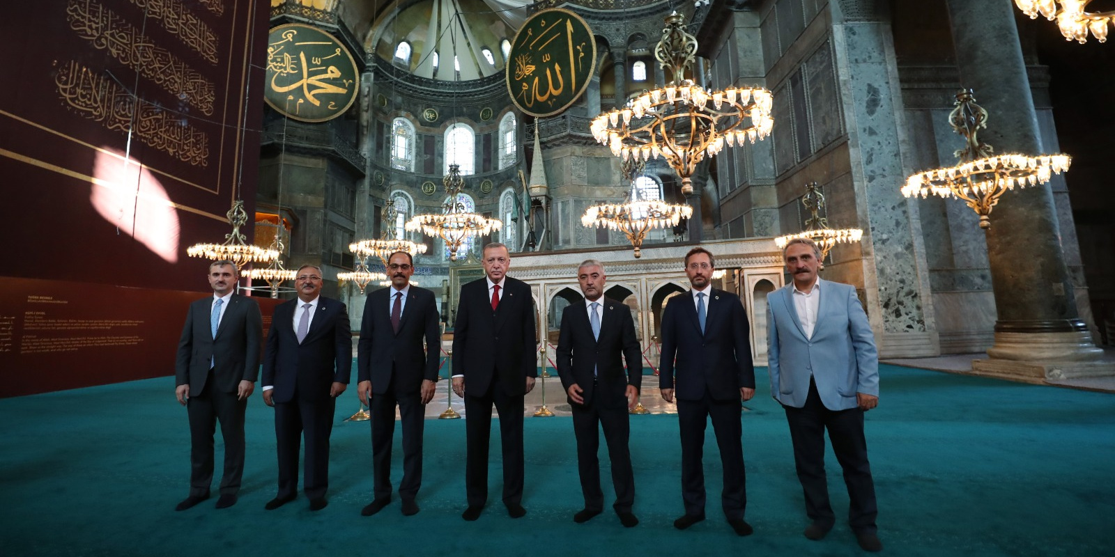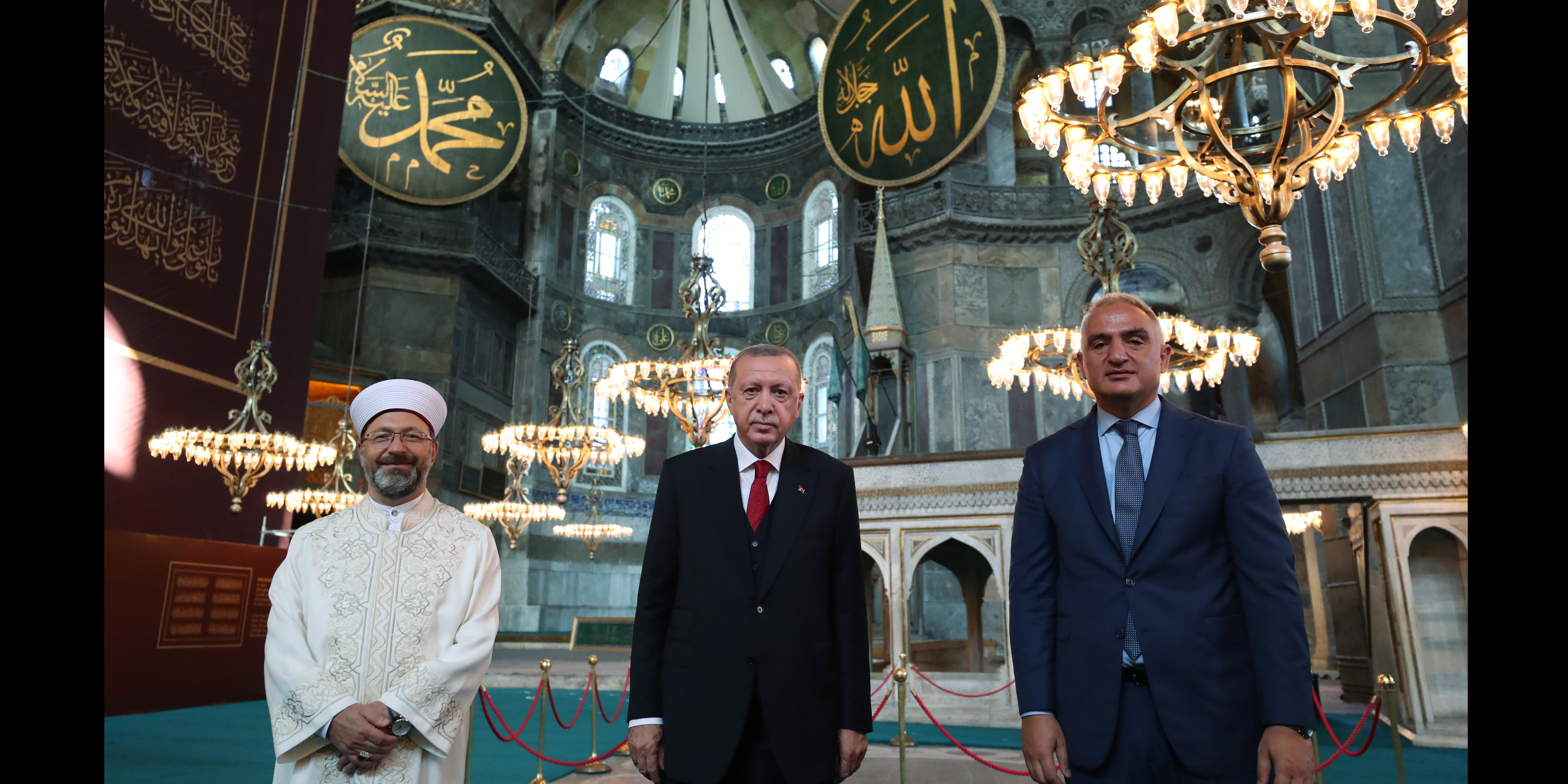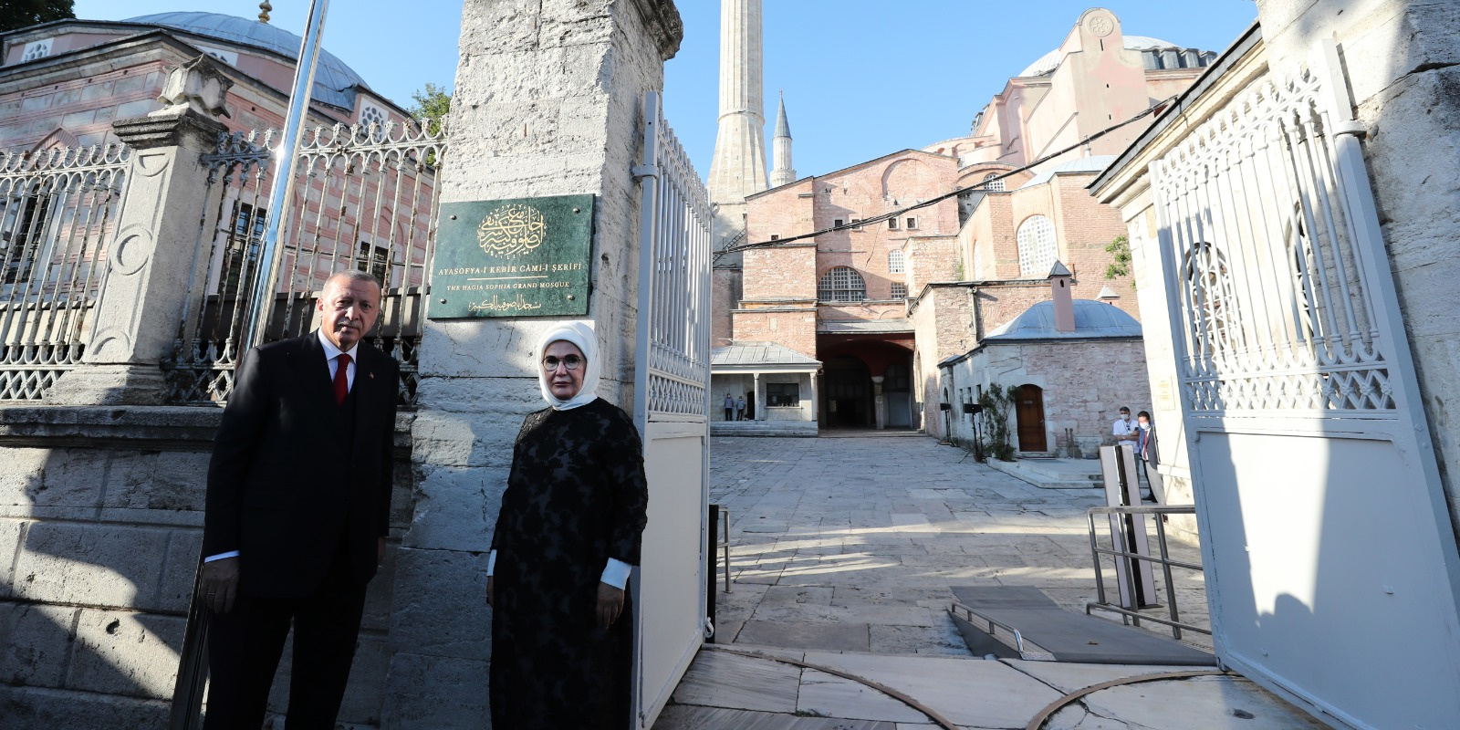 Erdoğan left the Hagia Sophia Mosque after his examinations.