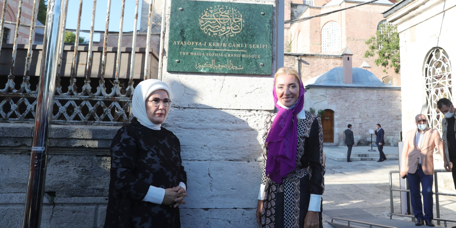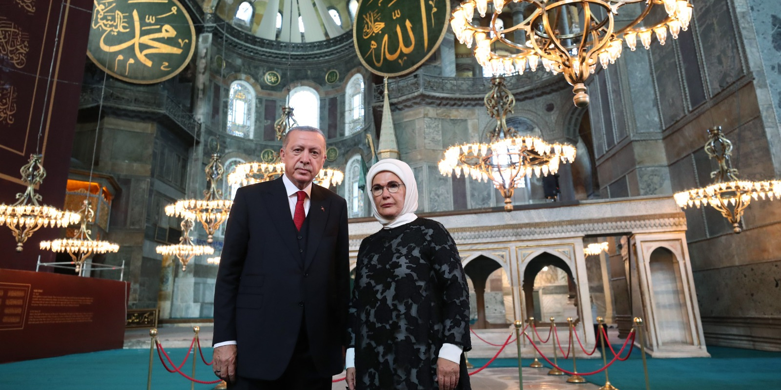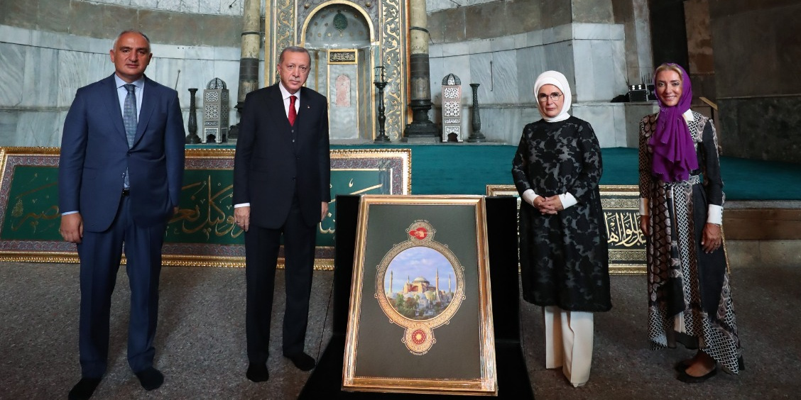 Erdoğan left the Hagia Sophia Mosque after his examinations.