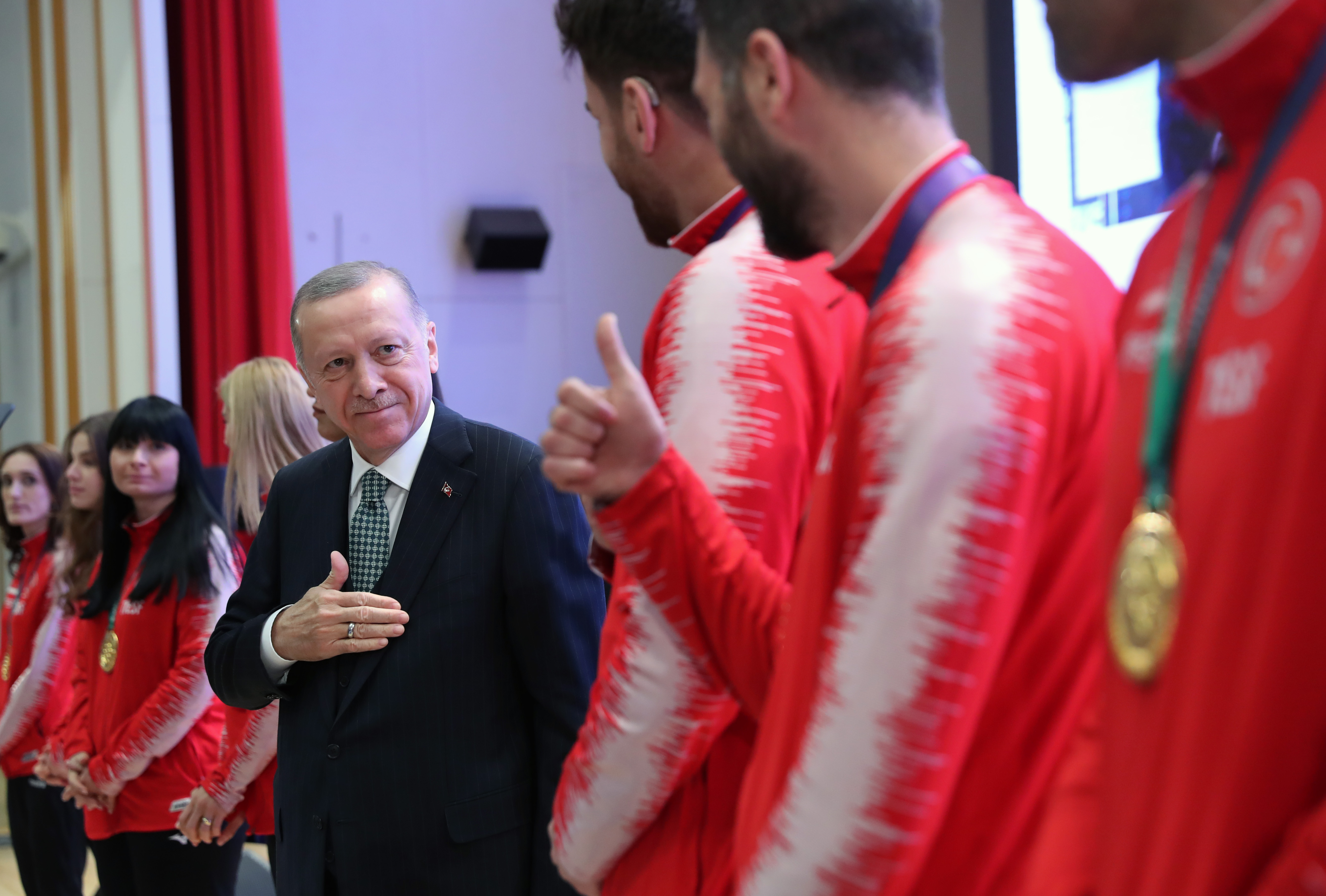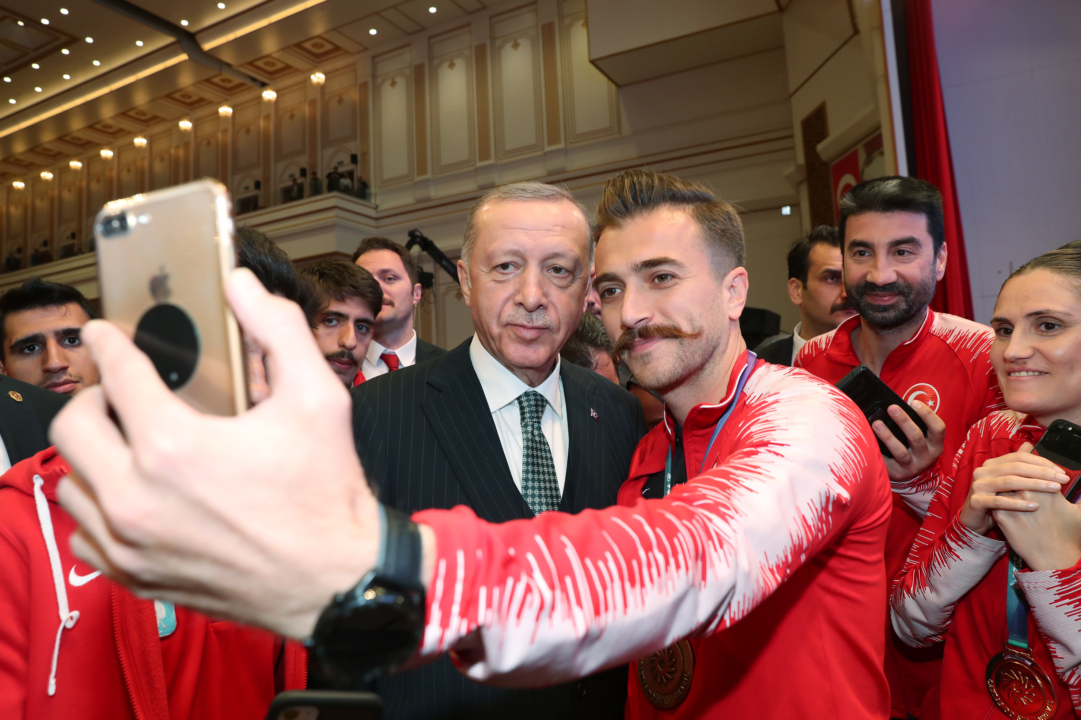 President Recep Tayyip Erdoğan met with national athletes and youth representatives at the debut of Independence Ballads on the occasion of the May 19 Commemoration of Atatürk, Youth and Sports Day at Convention and Culture Center of the Grand Ankara Mosque.