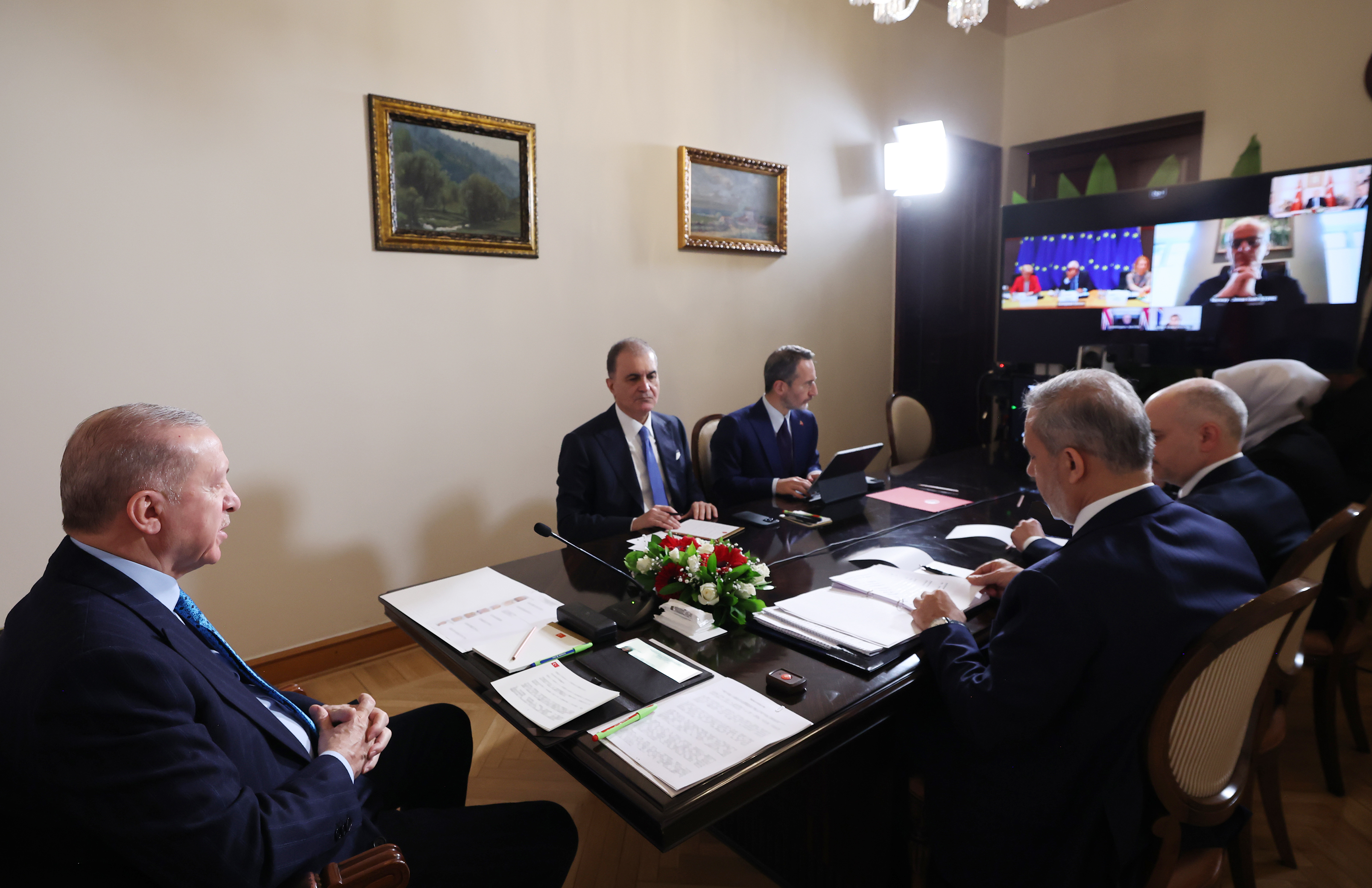 President Recep Tayyip Erdoğan attended a virtual meeting of leaders from Dolmabahçe Presidential Office.