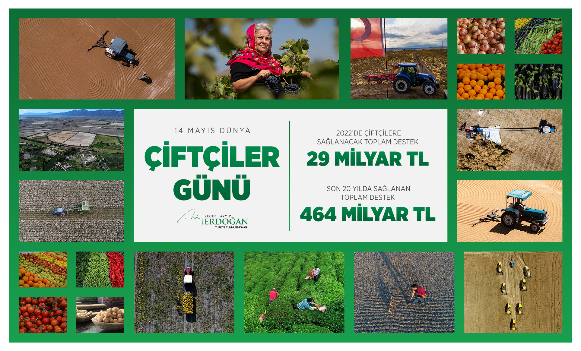 In addition, in the image that President Erdoğan included in his message, it was stated that in 2022, 29 billion liras of support will be provided to farmers.