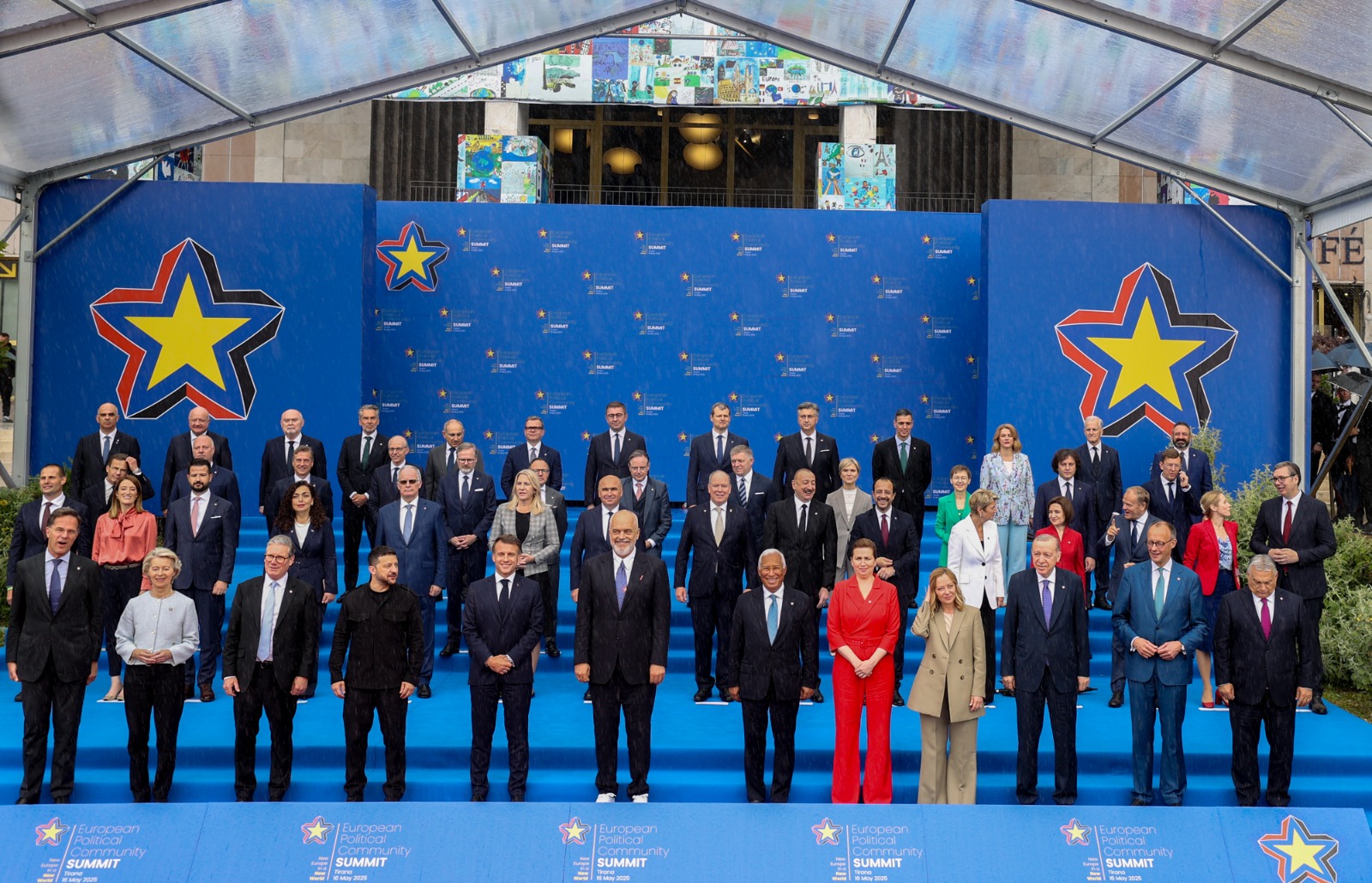 Following the opening event, the leaders proceeded to the family photo area. President Erdoğan and other leaders, afterwards, signed the board with the European Political Community logo.