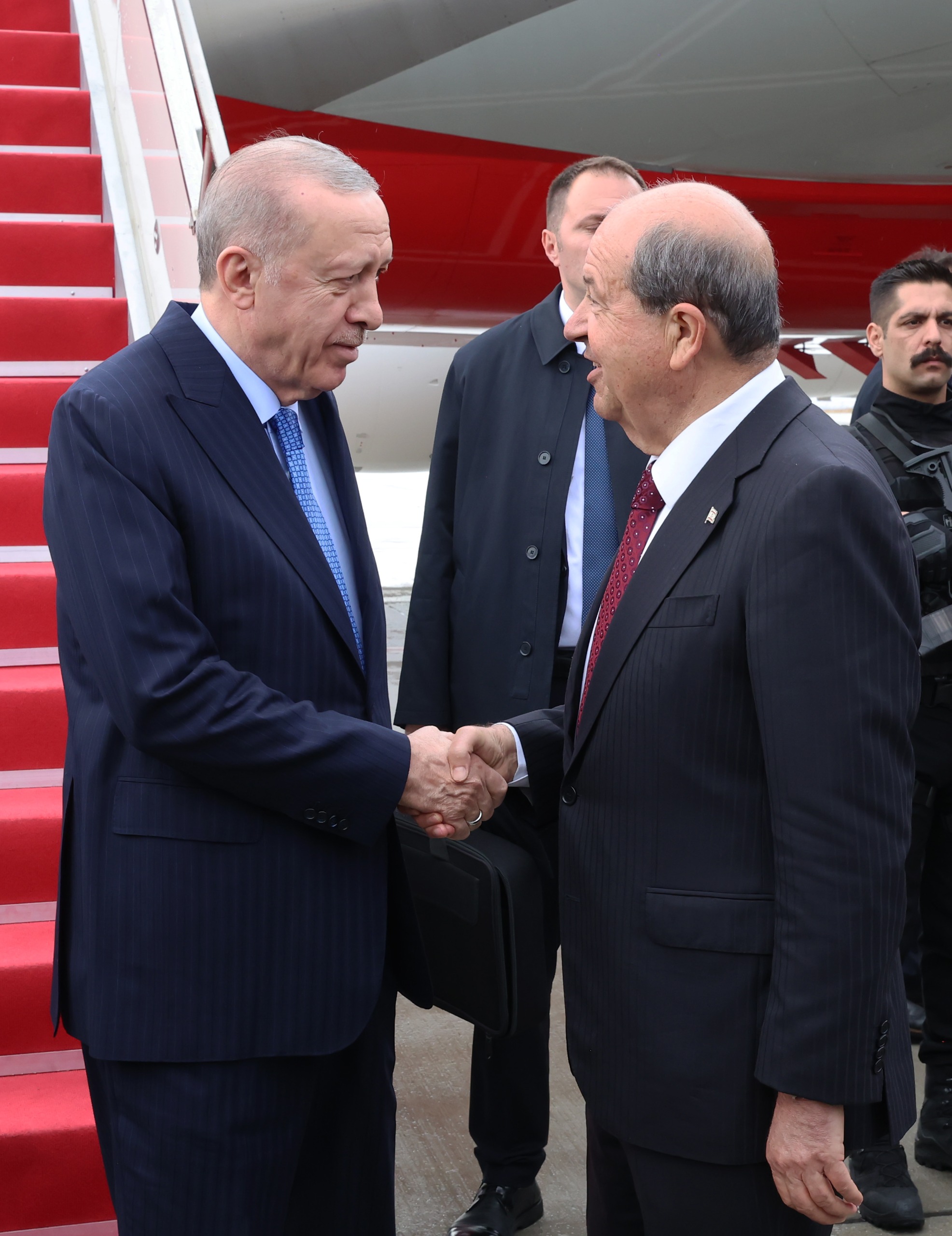 Upon his arrival at Ercan Airport, President Erdoğan was welcomed by TRNC President Ersin Tatar, Speaker of the Grand National Assembly of Türkiye (GNAT) Numan Kurtulmuş, TRNC Republican Assembly Speaker Ziya Öztürkler, TRNC Prime Minister Ünal Üstel and Türkiye’s Ambassador to the TRNC Ali Murat Başçeri.