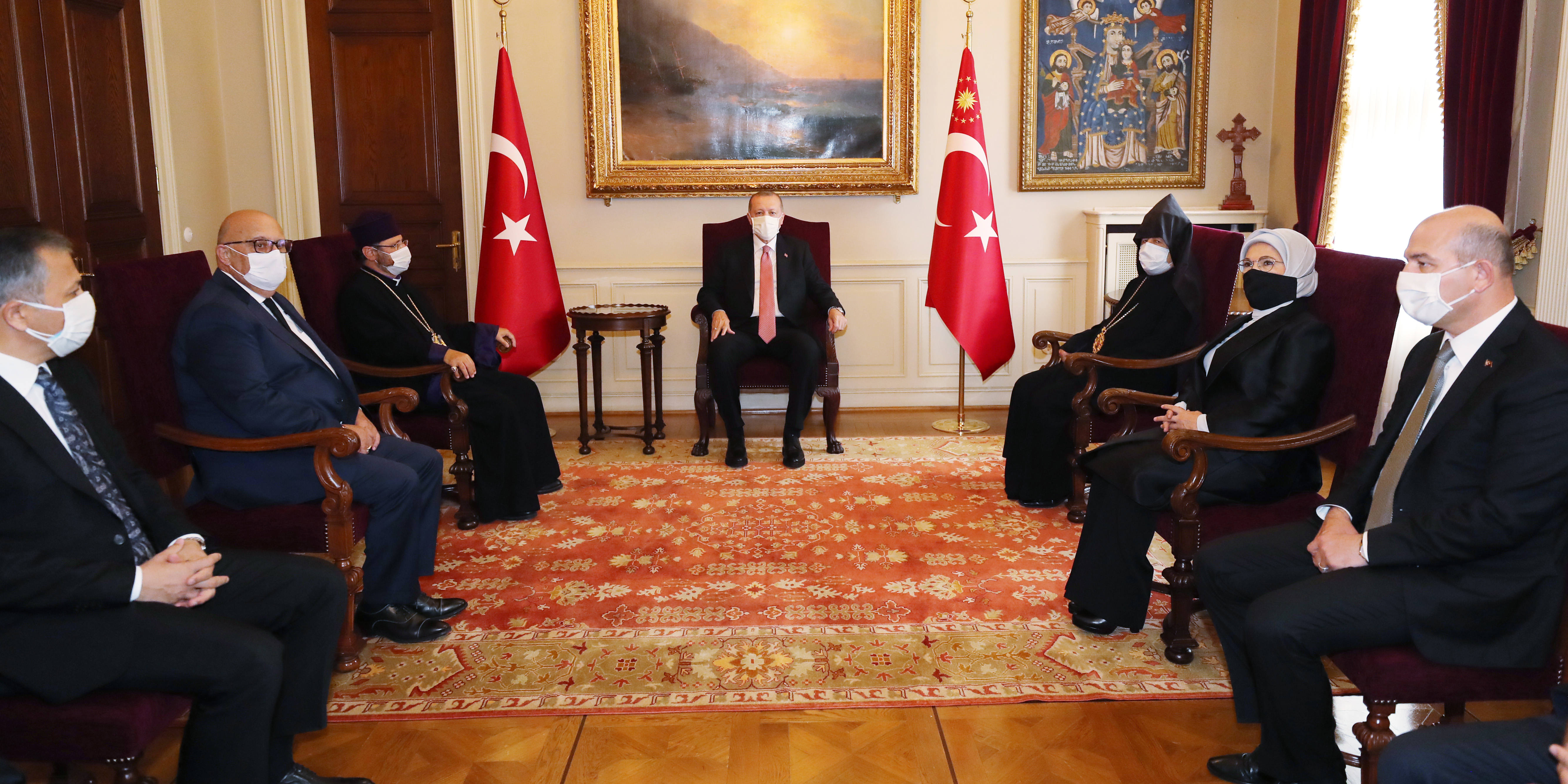 From there, President Erdoğan went to the Armenian Patriarchate of Turkey, established under the ordinance of Mehmed the Conqueror in 1461, with the 85th Armenian Patriarch of Turkey Sahak Maşalyan who welcomed him.
