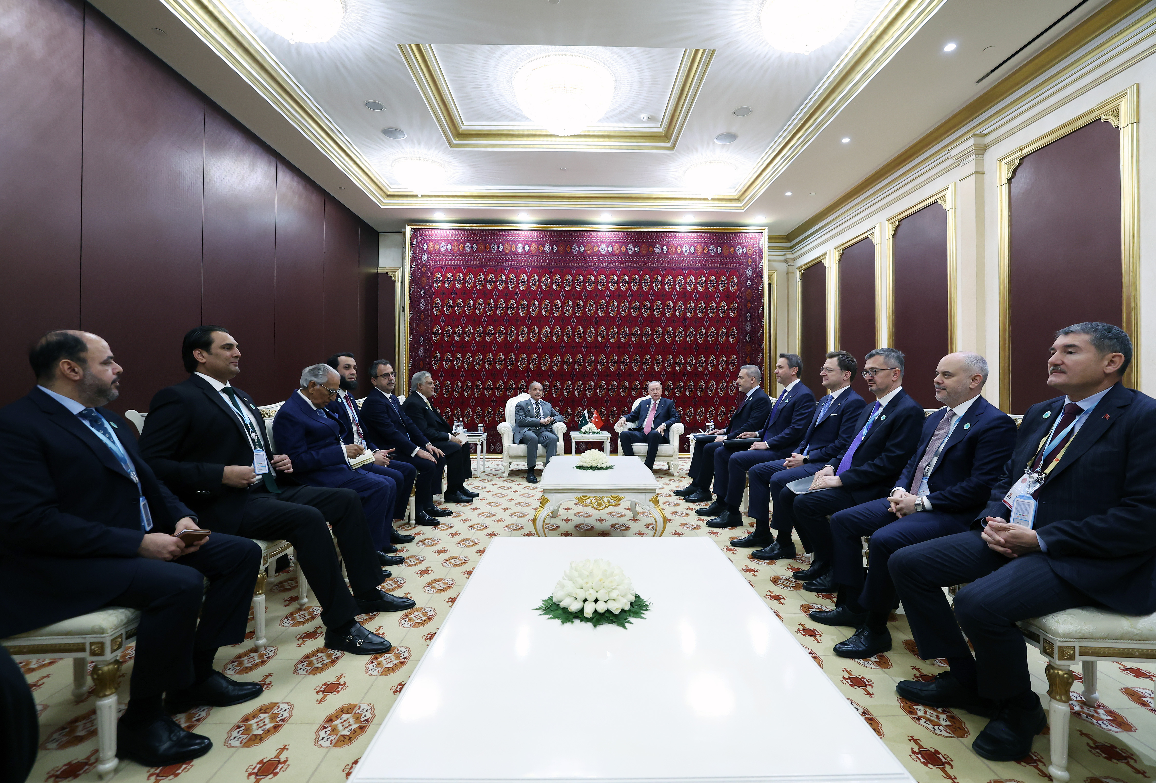President Recep Tayyip Erdoğan met with Prime Minister Shehbaz Sharif of Pakistan on the sidelines of the International Forum on Peace and Trust in Ashgabat, Turkmenistan.